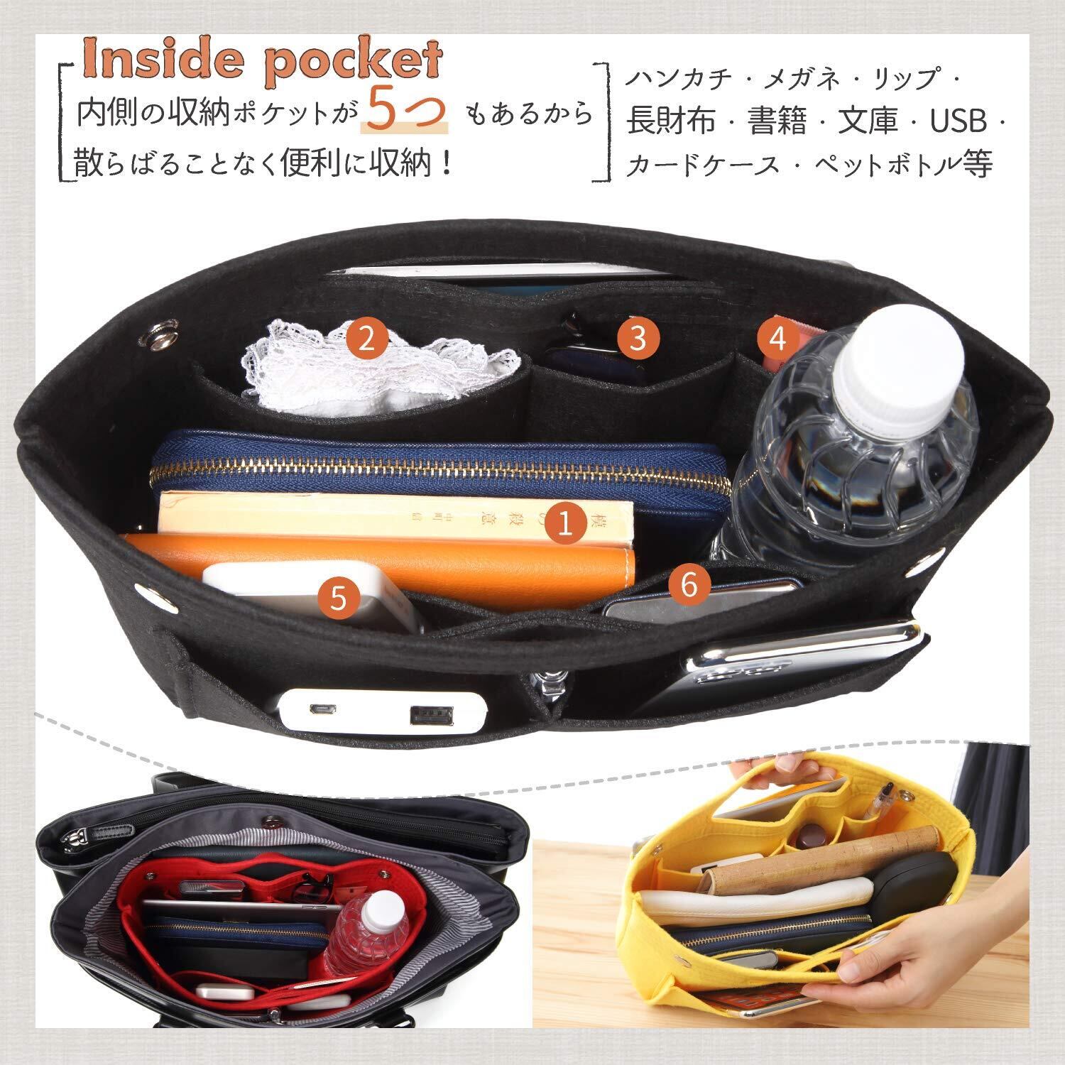 VILAU バッグインバッグ 底板付き トートバッグ インナーバッグ レディース フェルト 軽量 ブラック