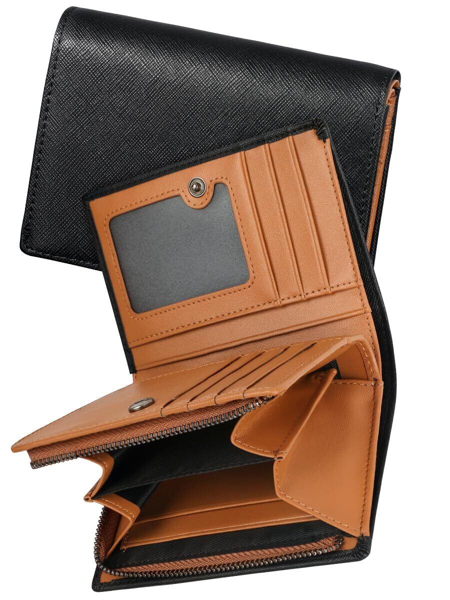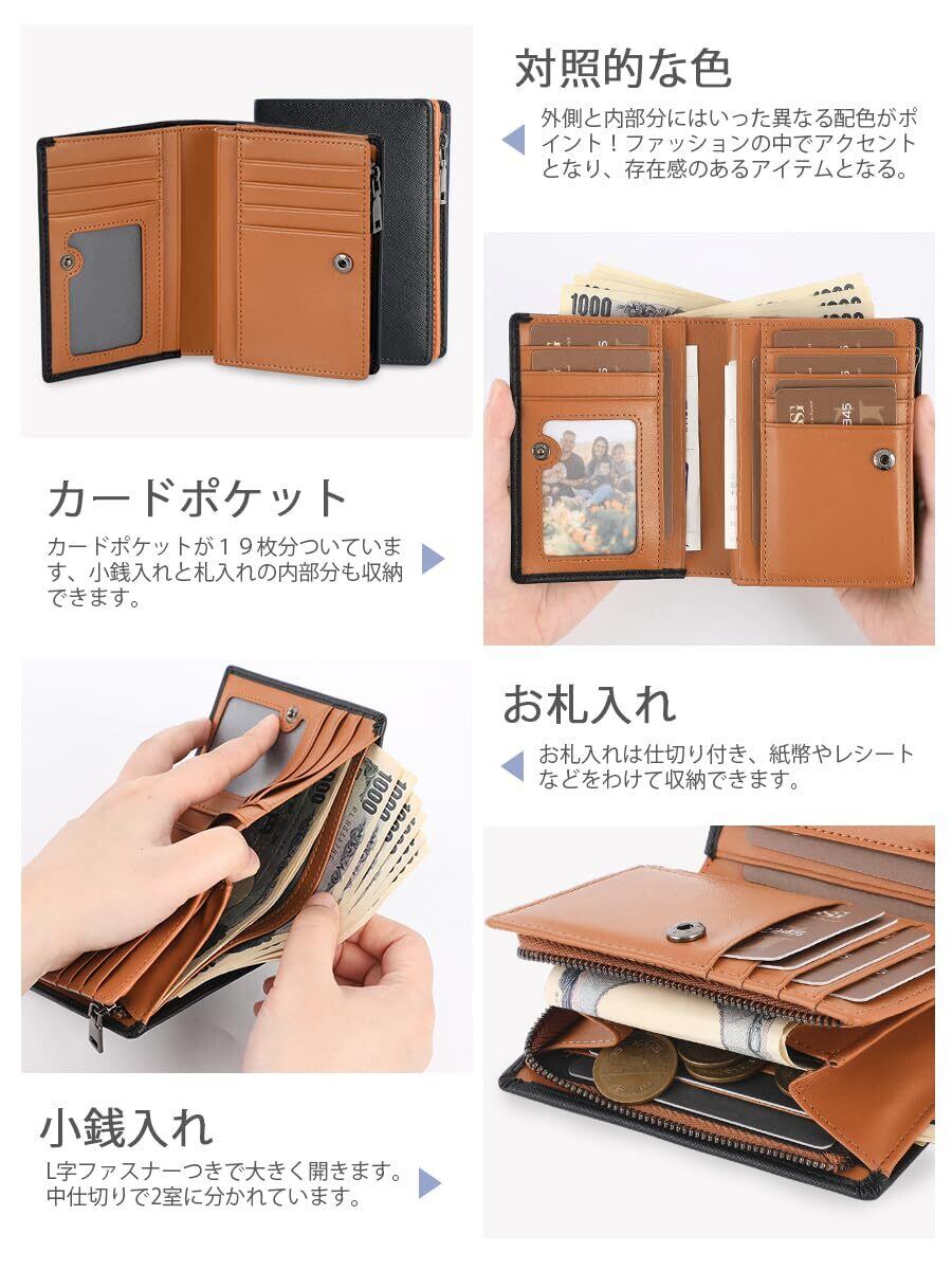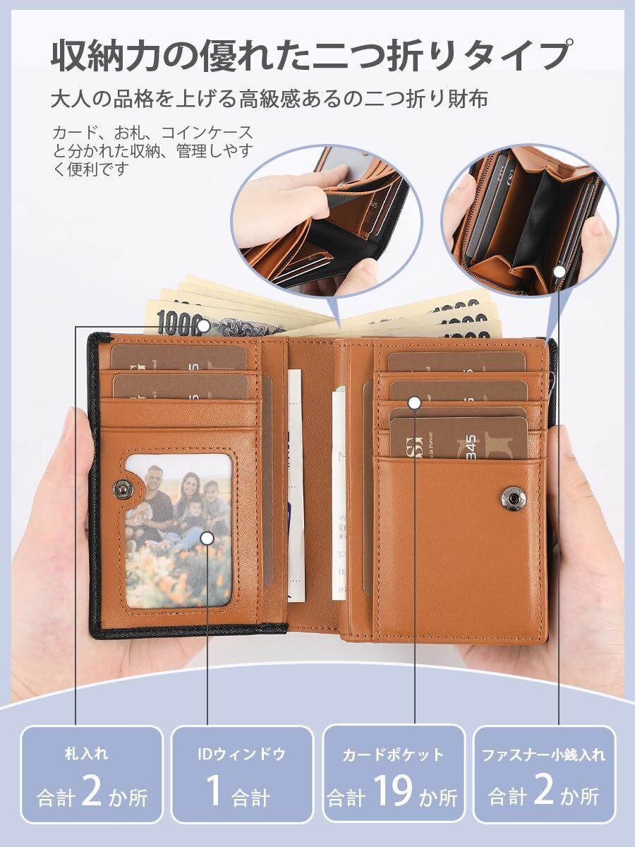 【財布 メンズ 2つ折り-商品説明】:(カラー):ブラック&ブラウン;(サイズ):約12.2*9.7*2.5cm;(仕様):カード入れx19( IDウィンドウ×1)(フリーポケット ×4)、札入れx2、L字型ファスナー小銭入れ× 1(仕切りある);職人がひとつひとつ丁寧に製作いたしまいした二つ折り財布メンズが登場。