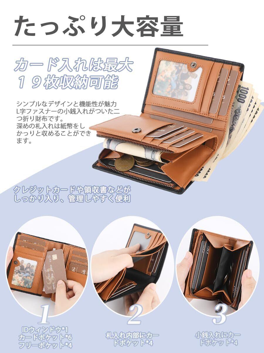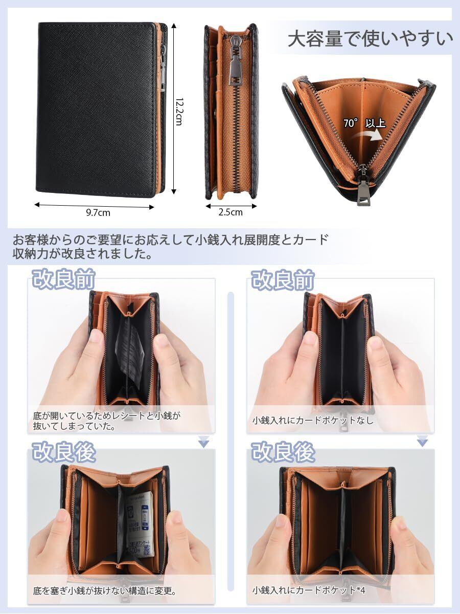 【財布 コンパクト 大容量で、収納抜群】:カード、お札、コインケースと分かれた収納は、クレジットカードや領収書などがしっかり入り、管理しやすく便利です。L字型ファスナー式小銭入れで、コインの出し入れはしやすいです。