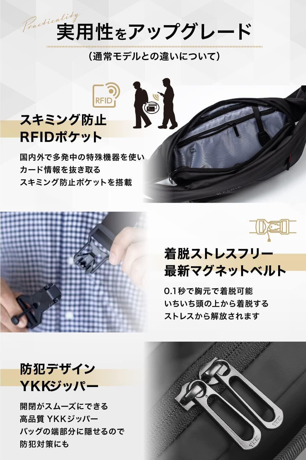 【公式】セイファス ボディバッグ ショルダーバッグ ウエストポーチ メンズ コンパクト 小さめ 軽量 撥水 多機能 3way 機能美を追求×ヨーロッパデザイン FARIE +ファッションコーディネートのお悩み解決 電子コラム付き (機能強化モデル(黒ジッパー))