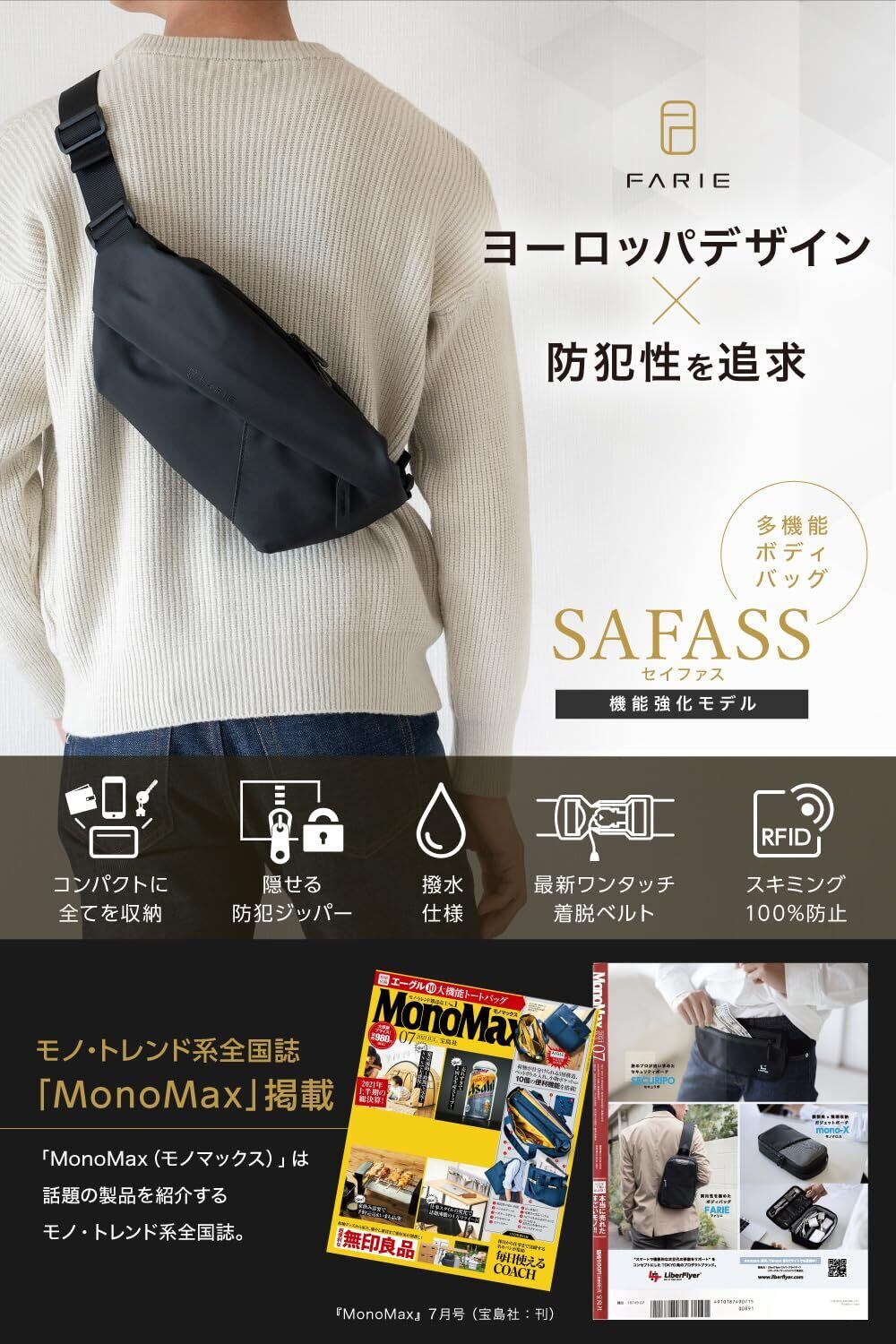 【人気商品】【公式】セイファス ボディバッグ ショルダーバッグ ウエストポーチ メンズ コンパクト 小さめ 軽量 撥水 多機能 3way 機能美を追求×ヨーロッパデザイン FARIE +ファッションコーディネートのお悩み解決 電子コラム付き (機能強化モデル(黒ジッパー))