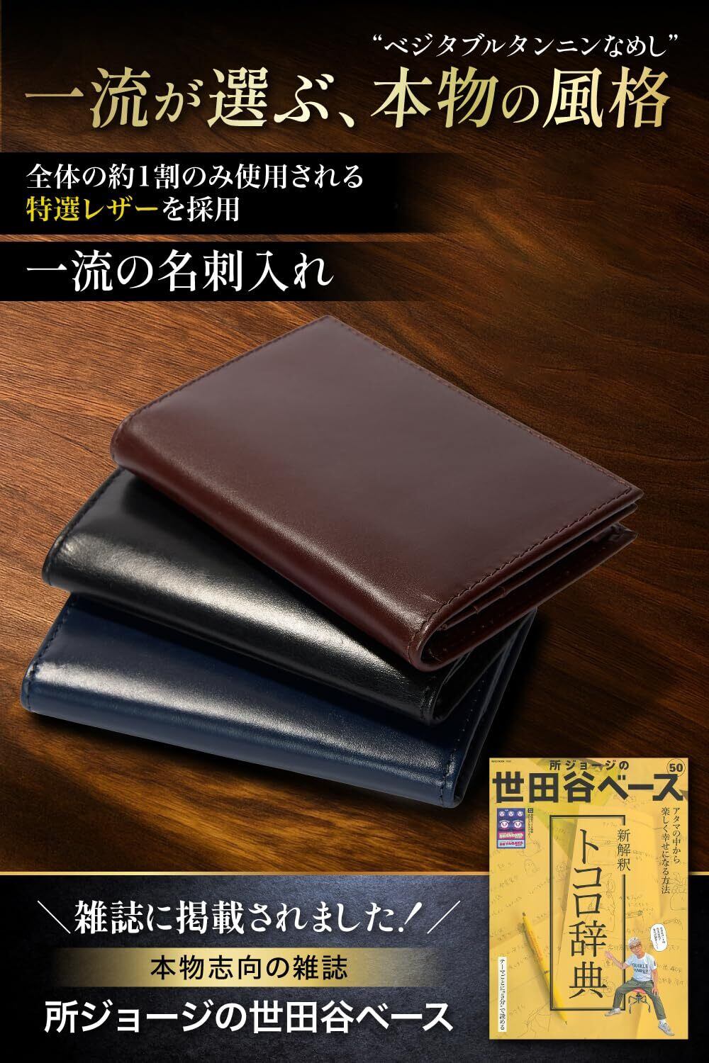 【名刺を取り出しやすい幅広タイプ】一般的な名刺入れより少し幅に余裕を持たせています。取り出しの際につっかえて名刺の角が折れてしまうことはありません。名刺交換の時に名刺を素早く差し出すことができ、お相手にスマートな印象を与えられます。