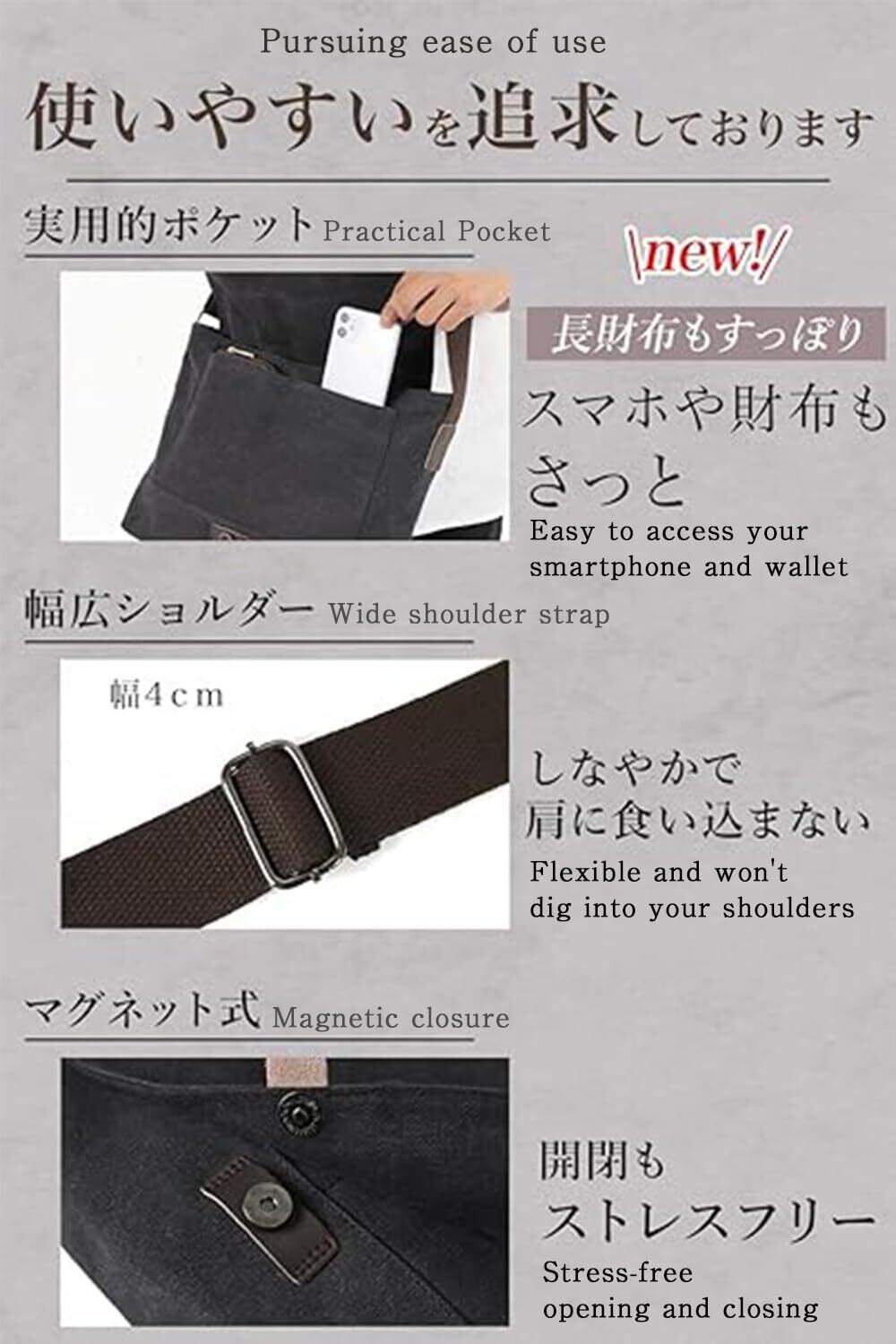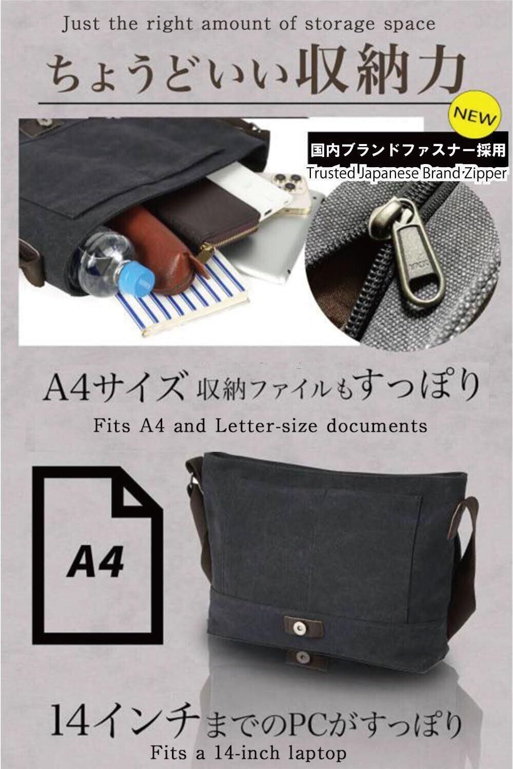 【人気商品】[Cota's home] 育てるバッグ ショルダー メンズ 国内ブランドファスナー A4 大容量 メッセンジャー 肩掛け 斜めがけ カバン 帆布 【使いやすくなって新登場】