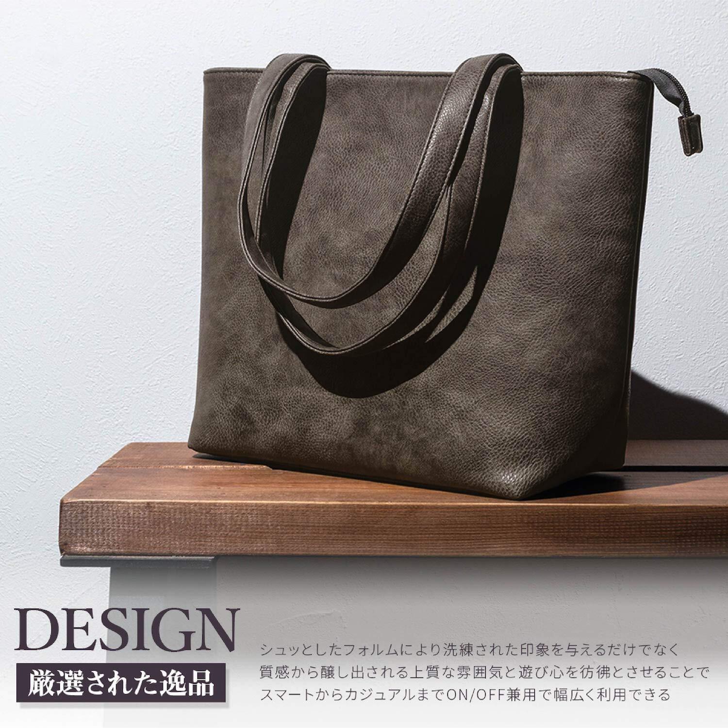 【厳選された質感とフォルム】上品で光沢を抑えたムラ模様のトートバッグです。シンプルさを求め、主張しすぎないオールマイティに使える”良い意味での脇役のバッグ”となってくれます。流行に左右されない”Simple is the best”という王道を貫き、男性女性問わず愛用していただけるデザインとなっています。”なめらかで光沢を抑えたマットなシンセティックレザー”を採用したことで、価格以上に見栄えする高コストパフォーマンスを実現しました。