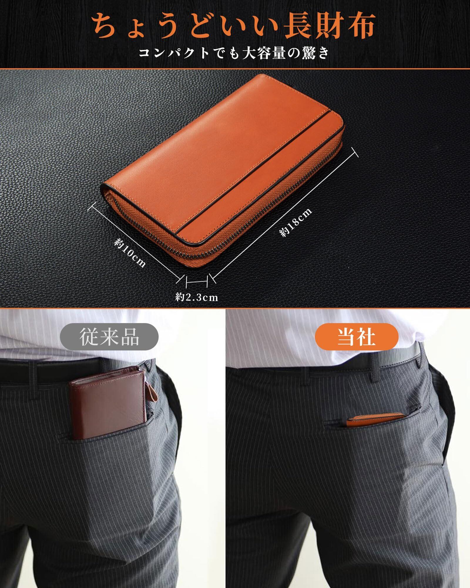 【使いやすいコンパクトサイズ】本革財布を開けると、カードがそれぞれ独立して立ち並ぶので見やすく出し入れしやすい。キャッシュレス時代に最適でカード決済に抜群の実力を発揮する、時短長財布です。「お支払いの動線」を意識し、従来のメンズ長財布を基づいて、「通帳ポケット」を追加し、おろしたお金をしまいつつ、通帳も一緒に持ち運びが出来て便利です。小銭だけではなく、鍵・領収書などの収納にも最適です。外側ポケットにカード入れがあるので、頻繁に使いそうなものをしまっておくことができます。