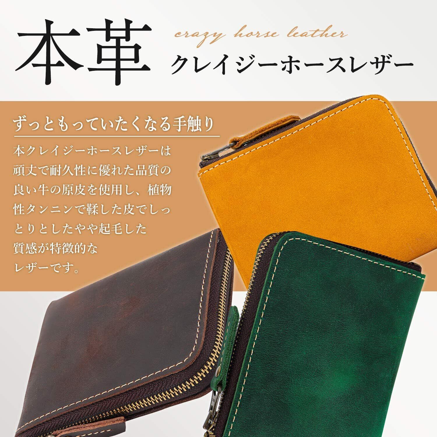 【お知らせ】本製品には高品質な本革クレイジーホースレザーを使用しています。初めは硬く感じられるかもしれませんが、使うほどに手に馴染み、柔らかくなります。長く愛用いただける素材ですので、ぜひお楽しみください。