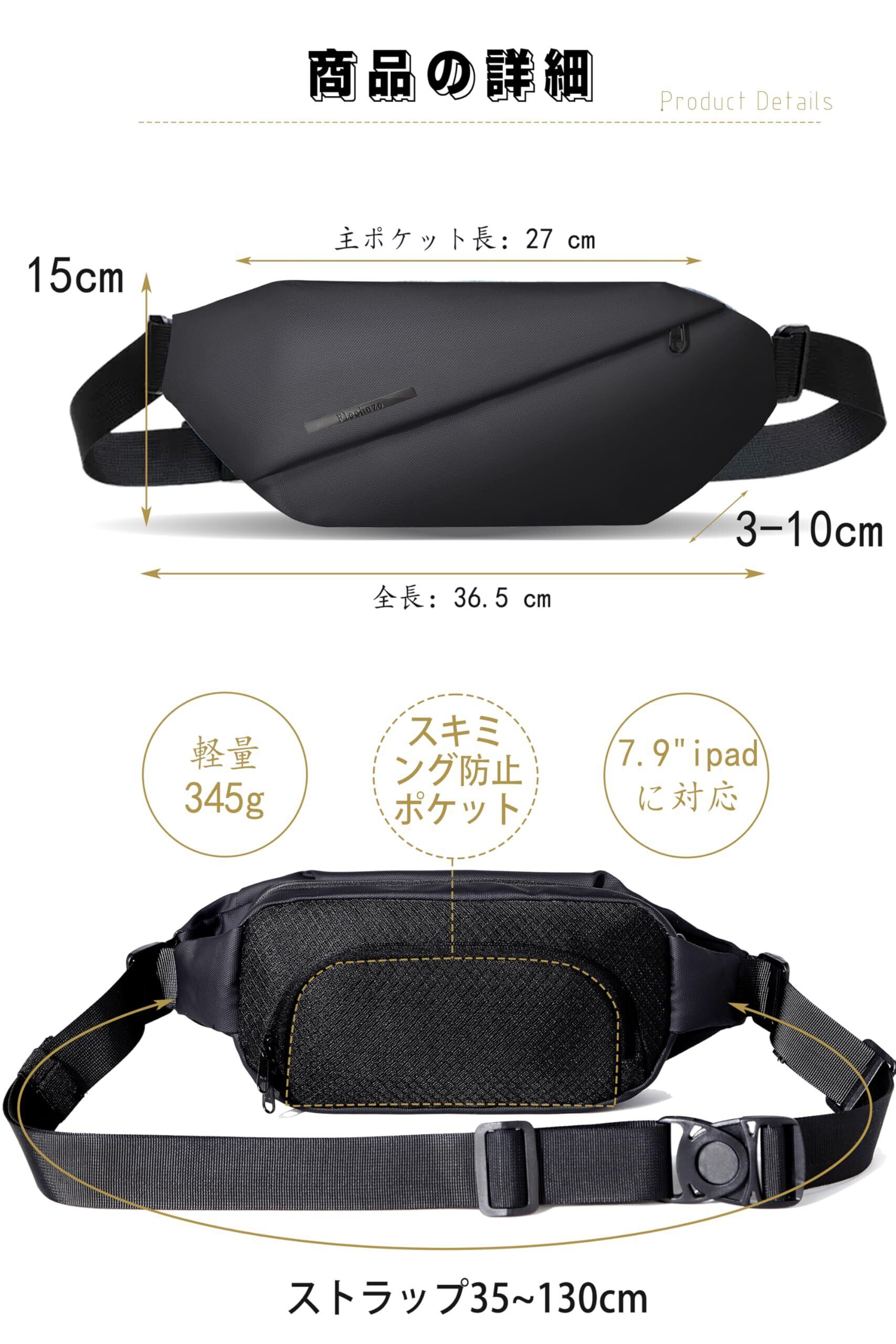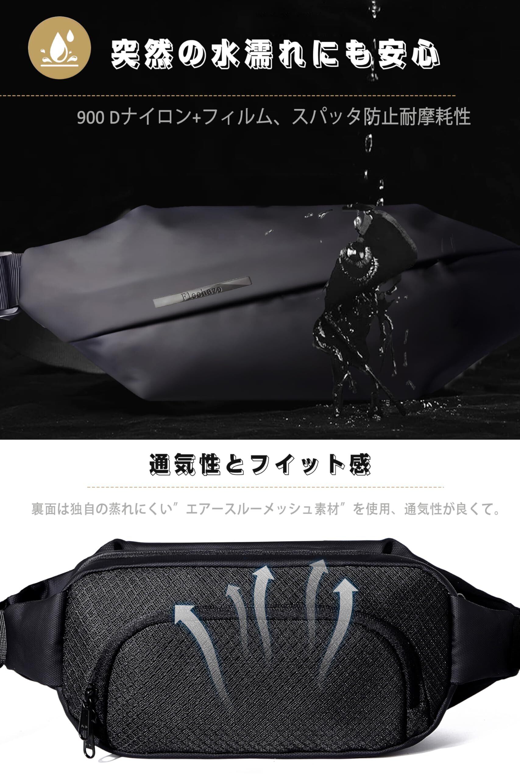 [Flechazo 機能強化3.0]ショルダーバッグ メンズ 斜めがけ ボディバッグ ウエストポーチ セキュリティポーチ コンパクト 小さめ 軽量 スキミング防止 rfid 軽量 撥水 多機能 3way 海外旅行、通勤、スポーツに適用(機能強化-ブラック)