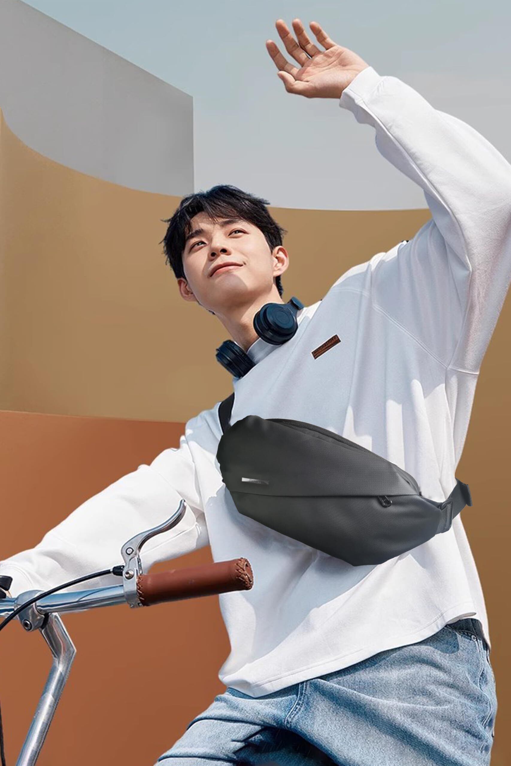 【防犯デザイン&セキュリティポーチ】貴重品を守るためにデザインされたRFIDボディバッグ。また、ボディバッグには簡易な南京錠が搭載されています。パスワード機能はありませんが、ボディバッグのメインポケットを簡単に開くことはできません。(※フロントとメインポケットはRFID対象外)