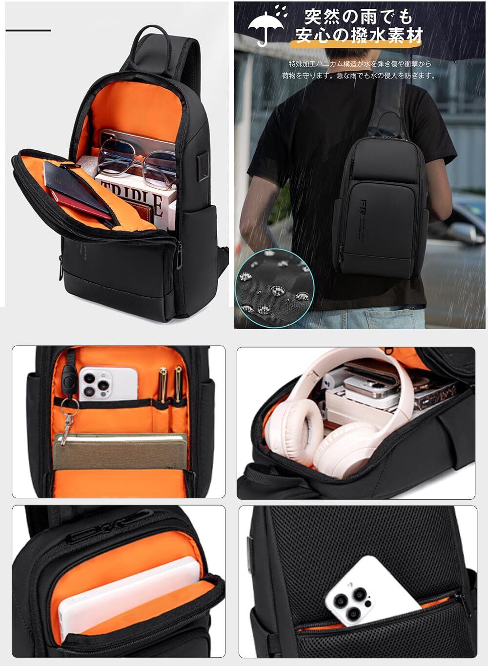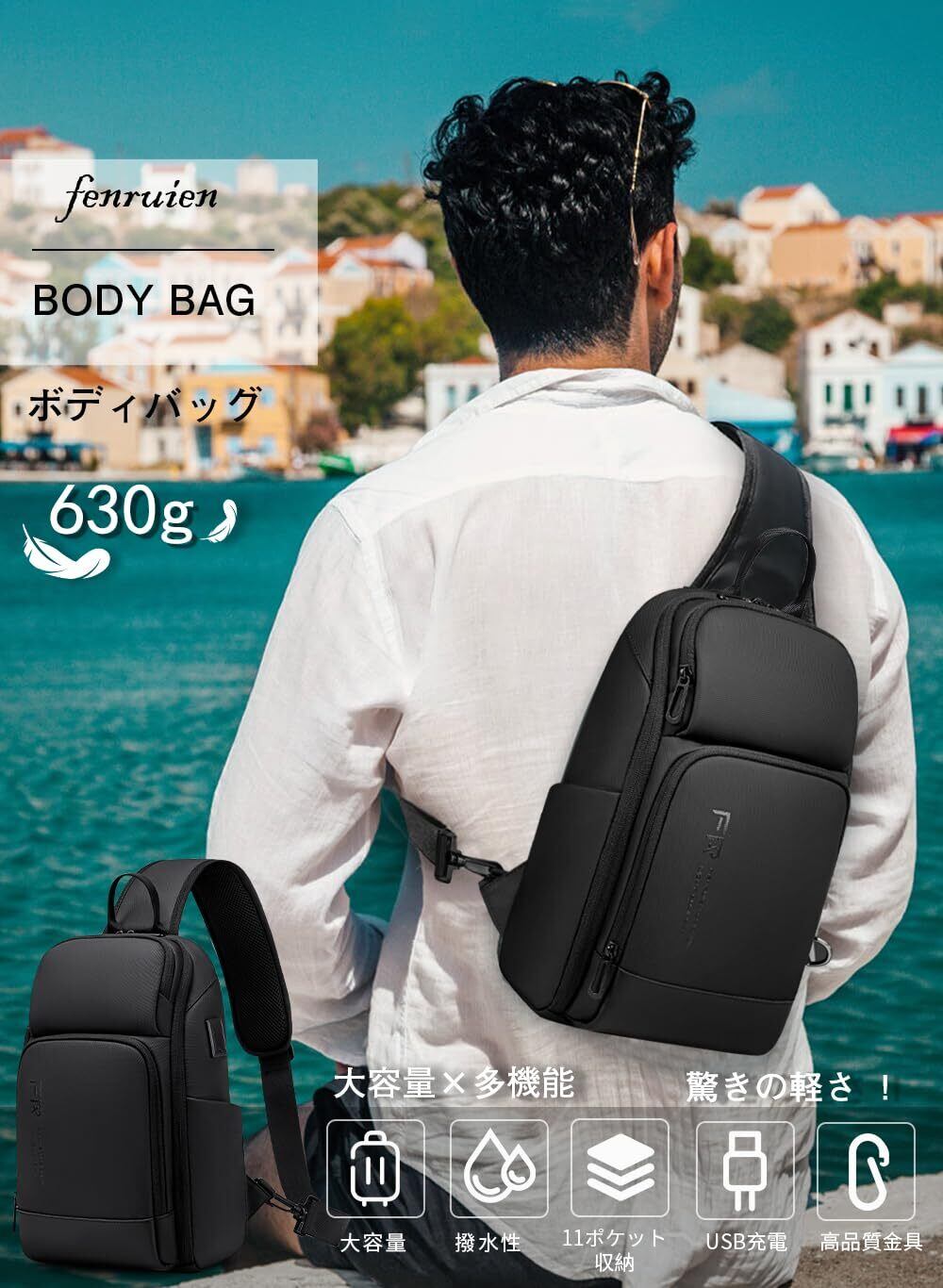【新着商品】[FENRUIEN] ショルダーバッグ メンズ ボディバッグ 斜めがけバッグ 大容量 ワンショルダーバッグ USB充電ポート搭載 10.1インチ iPad Pro対応 Switch OLED対応 多機能 ボディーバック 撥水 旅行