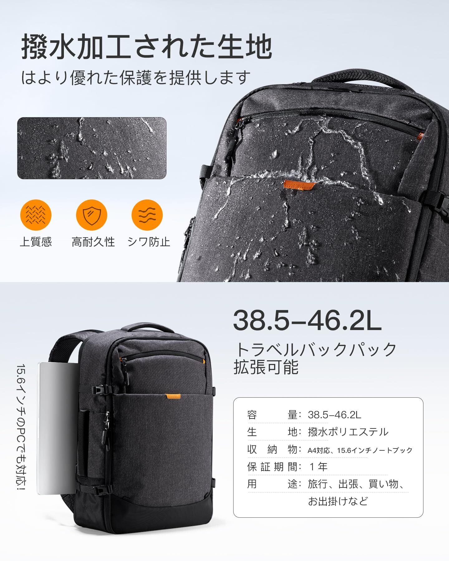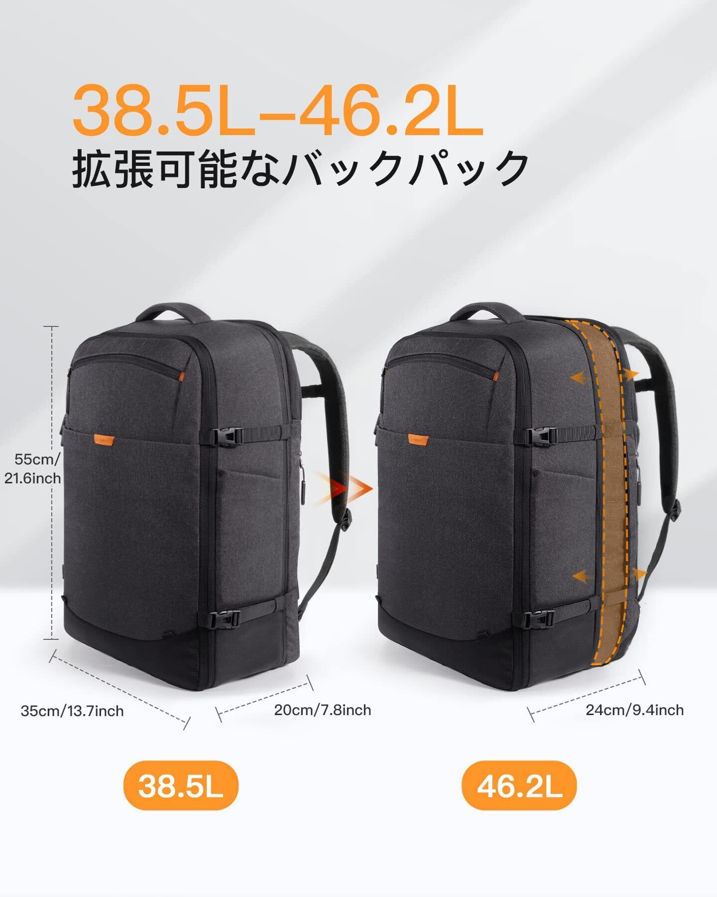 【新着商品】Inateck 38.5-46.2Lトラベルバックパック 拡張可能 機内持ち込み手荷物 ハンドラゲッジ トロリーストラップ付き 最大17.3インチラップトップ収納可能 盗難防止 撥水加工 耐衝撃 通勤 出張 通学 男女兼用