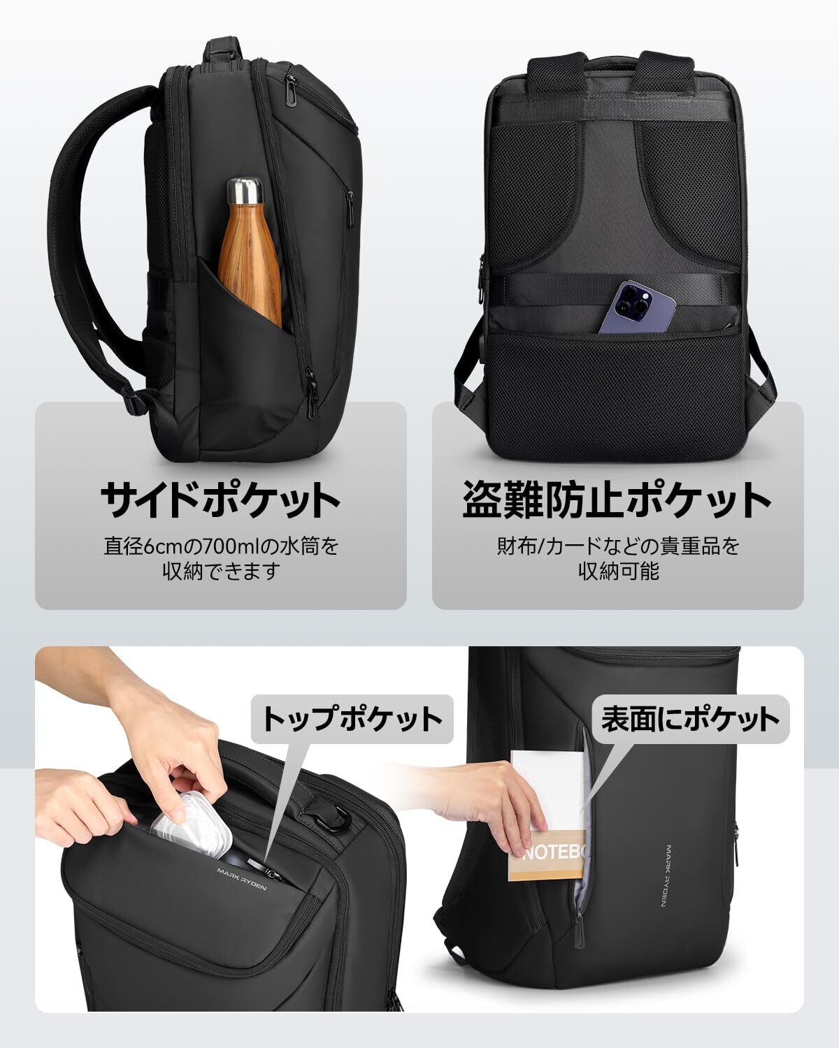 【2025最新】[MARK RYDEN] [マークライデン] バックパック 防水ビジネスリュック メンズ用 30L大容量 盗難防止ラップトップバッグ17インチパソコン対応