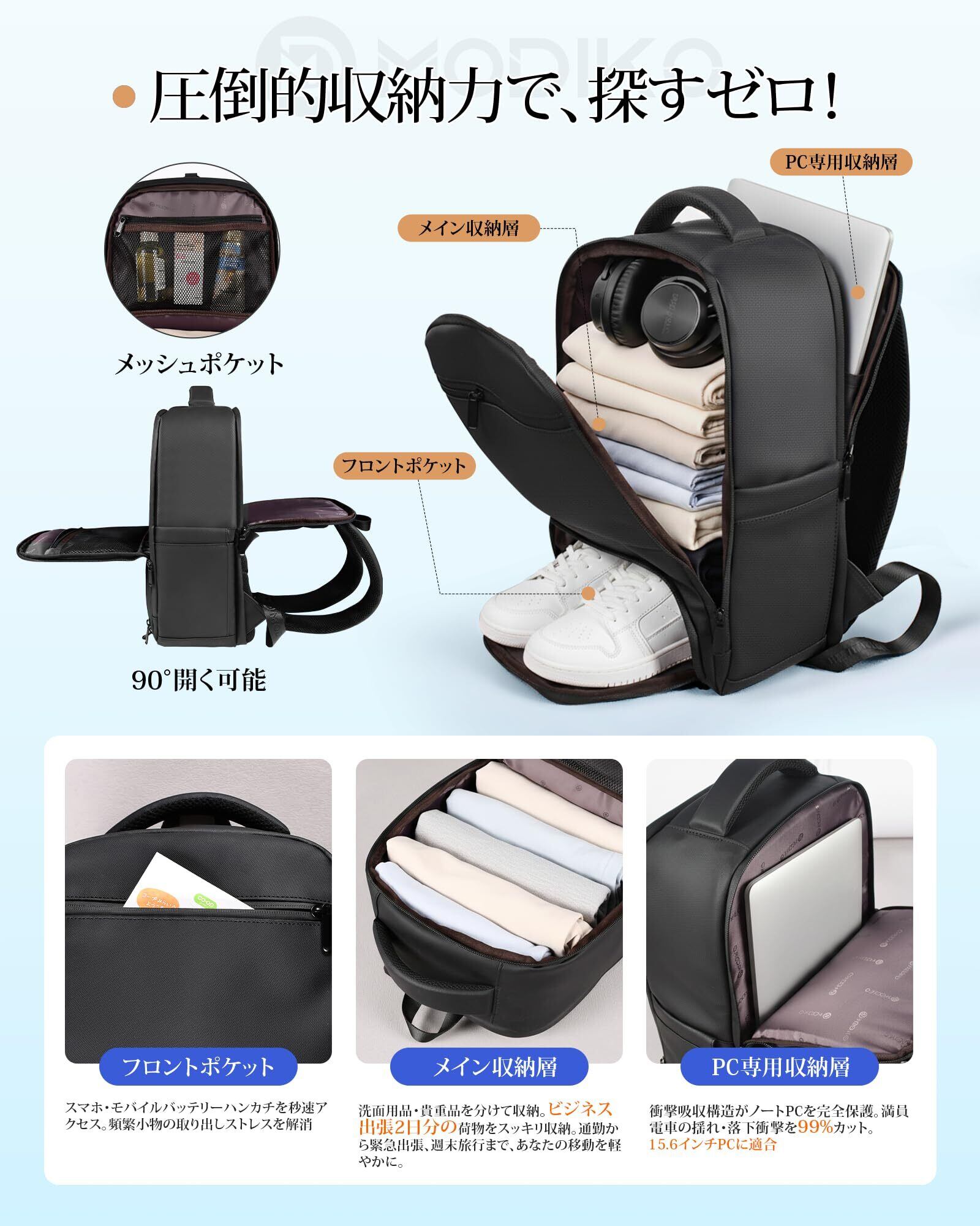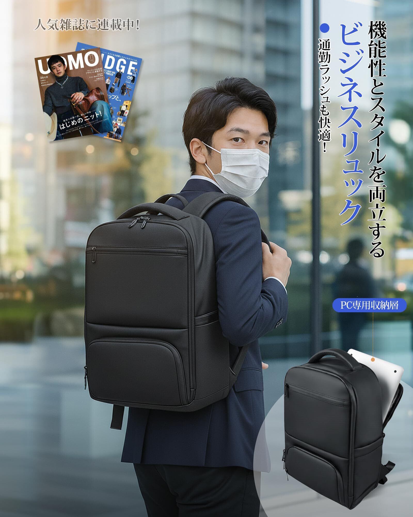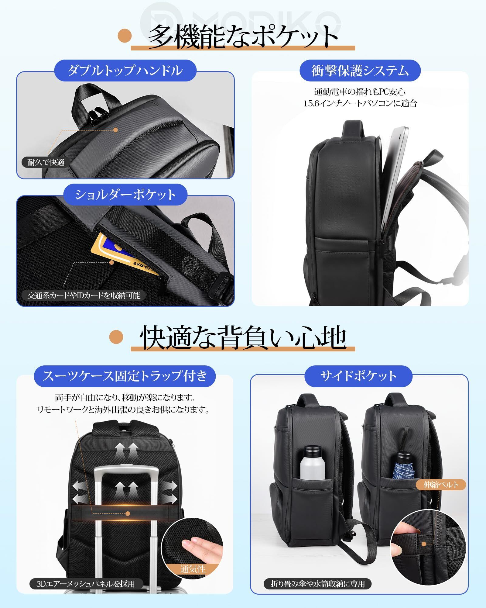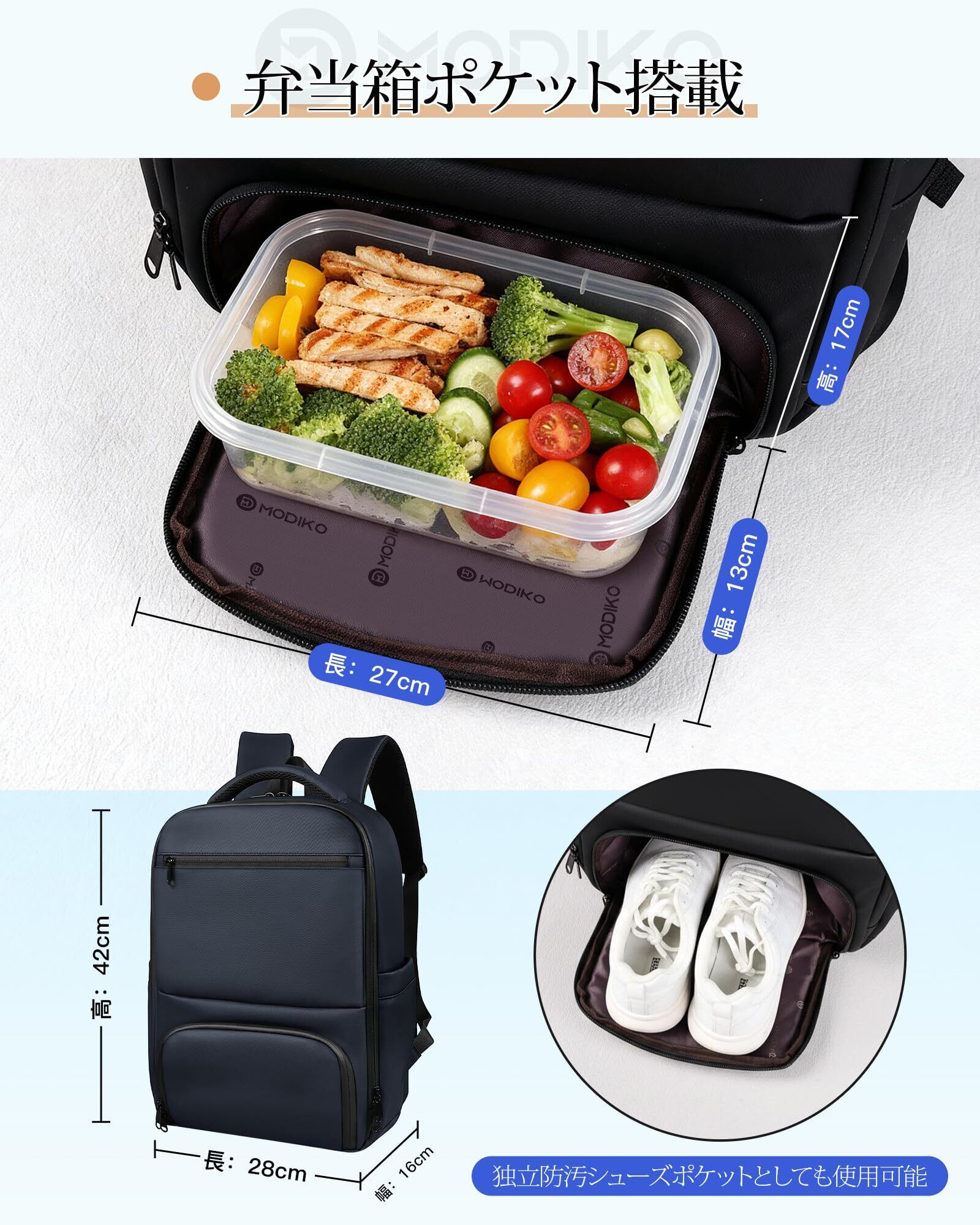 [Modiko] リュック メンズ ビジネスリュック 完全防水 止水ファスナー 弁当収納 リュックサック 大容量 15.6インチ PCリュック 出張 旅行 通勤 通学 型崩れ防止 人気