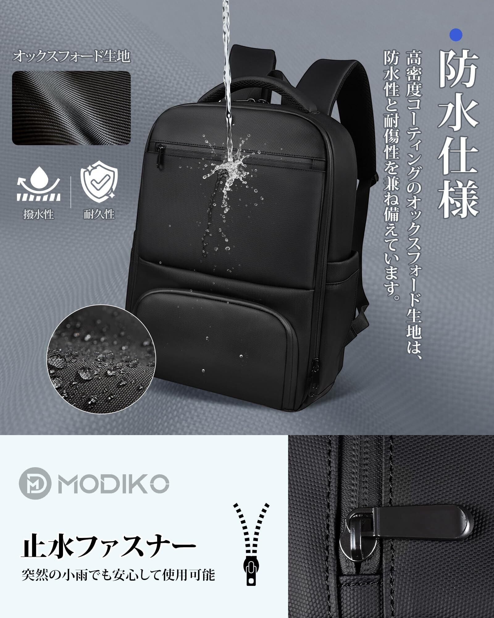 【限定セール】[Modiko] リュック メンズ ビジネスリュック 完全防水 止水ファスナー 弁当収納 リュックサック 大容量 15.6インチ PCリュック 出張 旅行 通勤 通学 型崩れ防止 人気