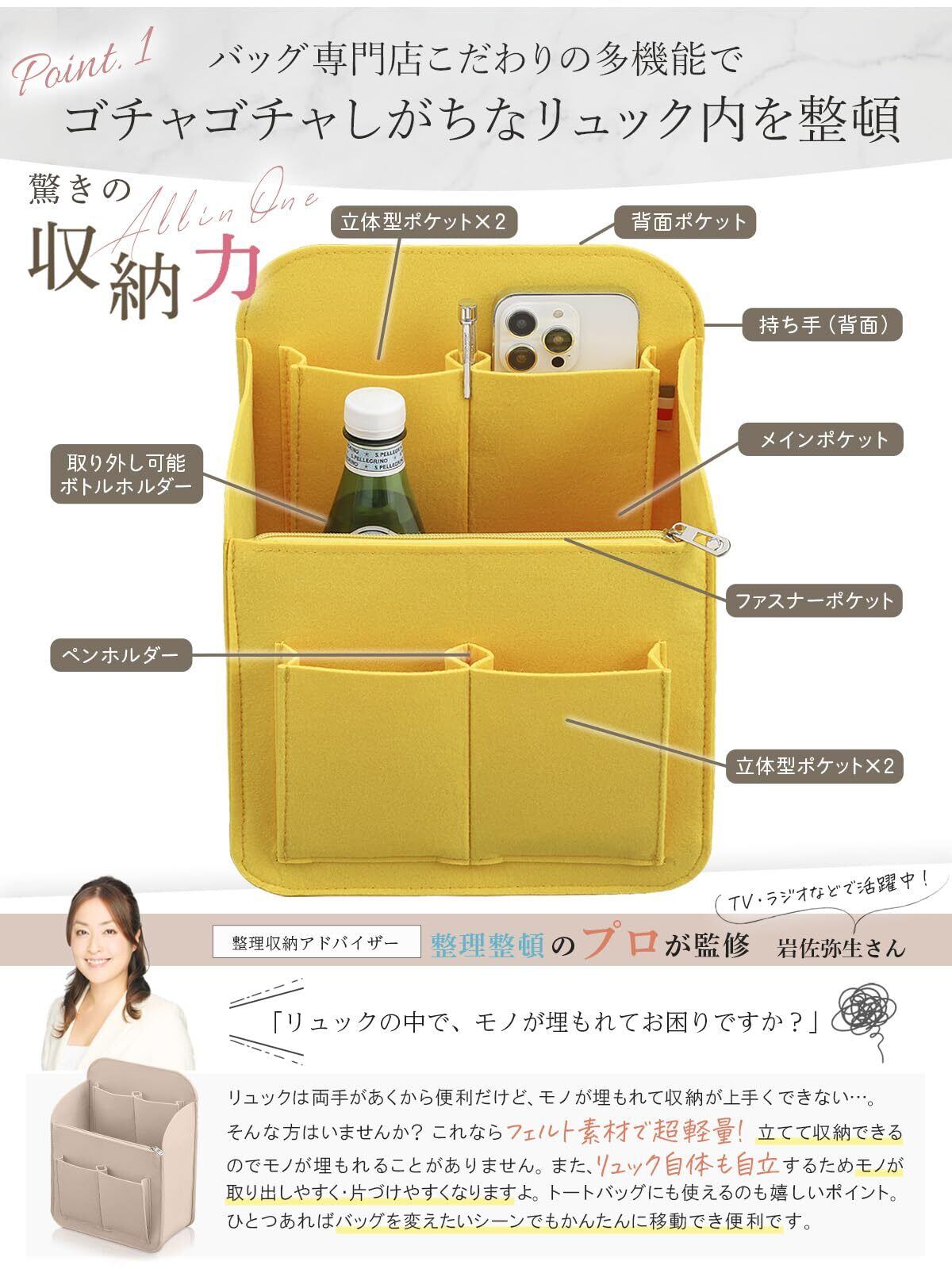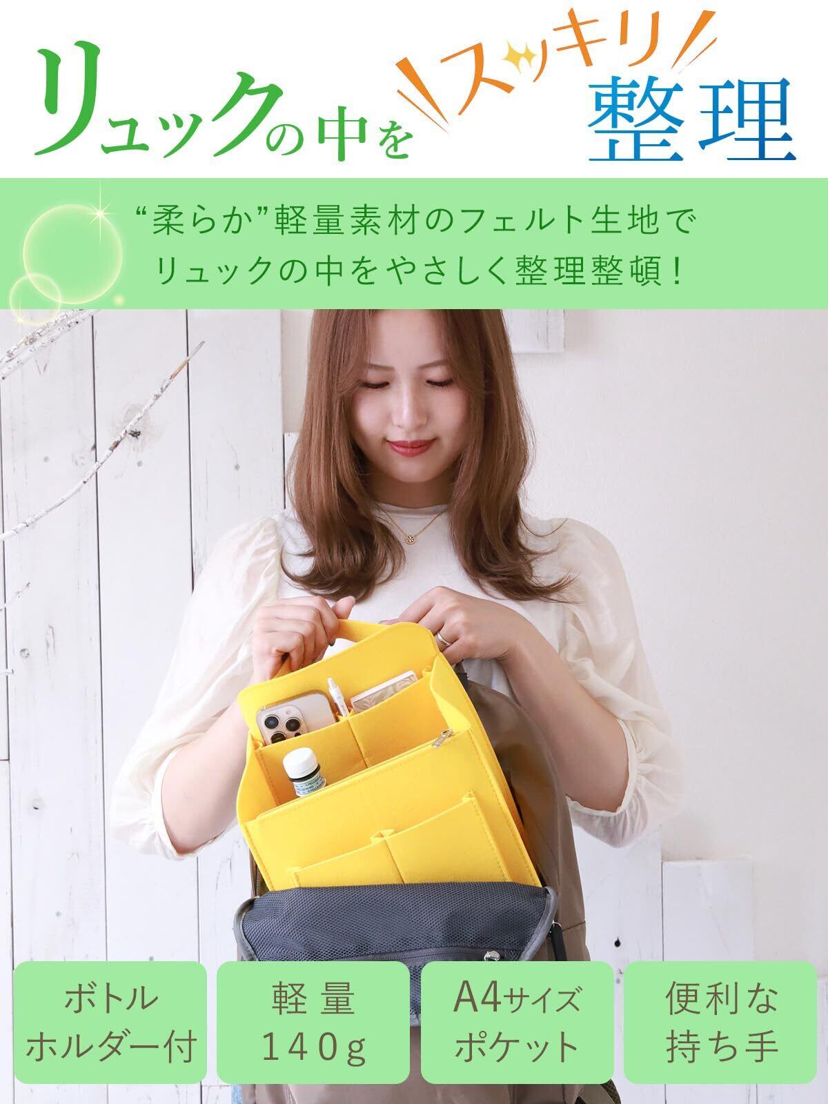 【リュックの中をスッキリ整頓】 リュックやトートバッグの中で散らかりがちな小物をスッキリ収納できるバッグインバッグ。柔らかなフェルト素材で荷物に傷がつきにくく、優しく整理整頓できます。