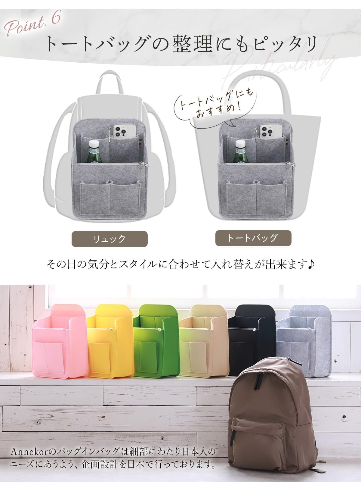 【新着商品】Annekor バッグインバッグ リュック 【軽量140g 底板付】 フェルト 柔らか素材 リュックインバッグ バックインバック インナーバッグ 軽量 ポーチ レディース メンズ インナーポーチ A4 B5 小さめ [アンコール] (ペールグレー)