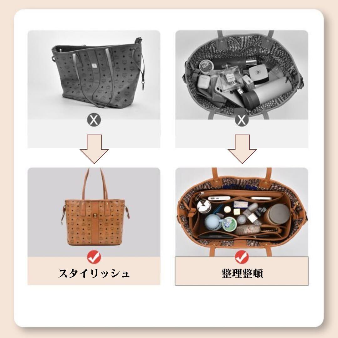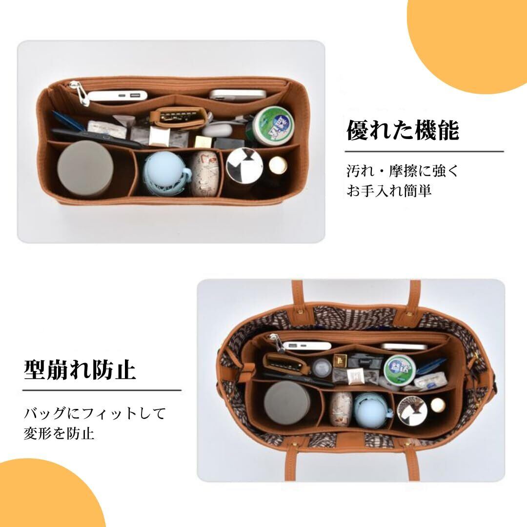 【軽量・自立】フェルト生地を用いることで軽量でありながら自立します。バッグの型崩れを防止し収納スペースを最大化してくれます。