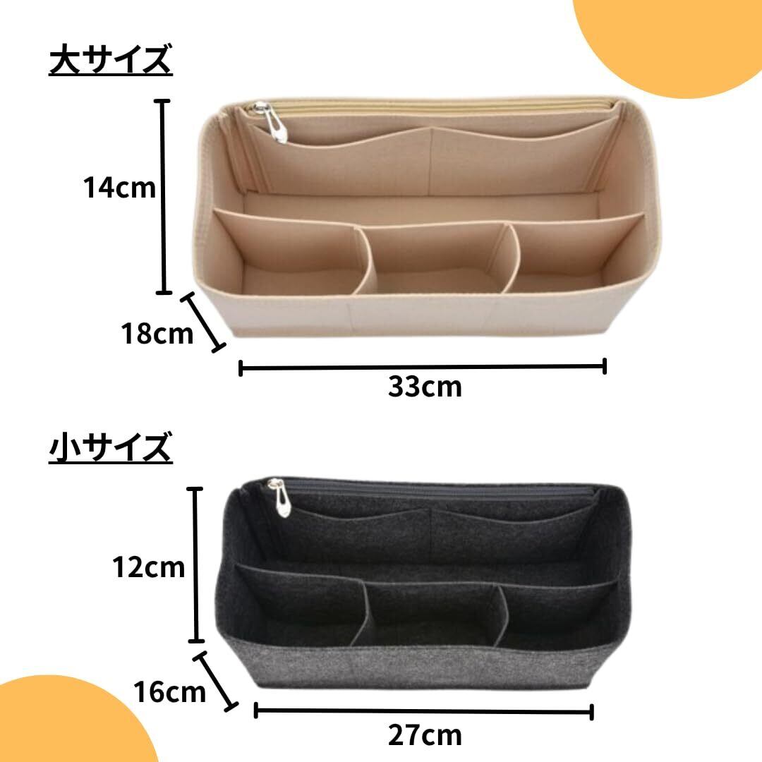 【限定セール】[Boscogno] バッグインバッグ フェルト 自立 軽量 ファスナー 仕切り インナーバッグ トートバッグ カバン リュック チャック (グレー, 大)