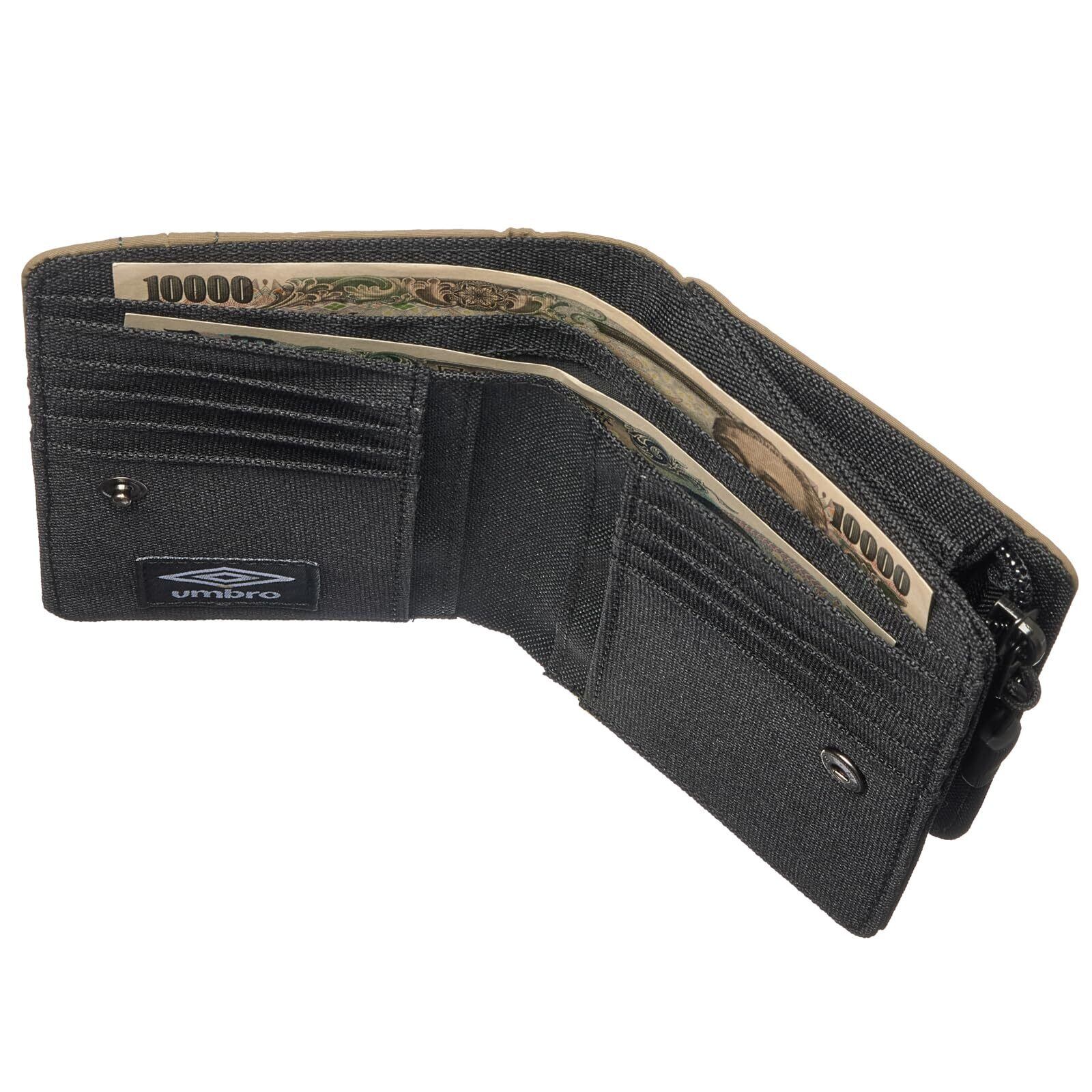 [アンブロ] 二つ折り財布 メンズ レディース ラウンドファスナー式 ナイロン製 小銭入れ・カード収納豊富 ミニウォレット Khaki