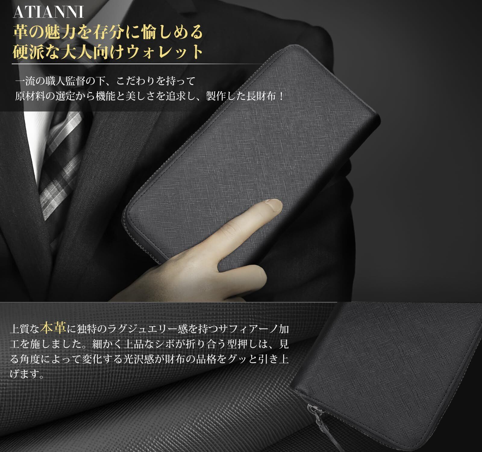 [ATIANNI] 財布 メンズ 長財布 大容量 本革 ラウンドファスナー スキミング防止 セパレート型 小銭入れ 一流の財布職人が作る 紳士用 ビジネス スタイリッシュ 牛革 さいふ ブラック