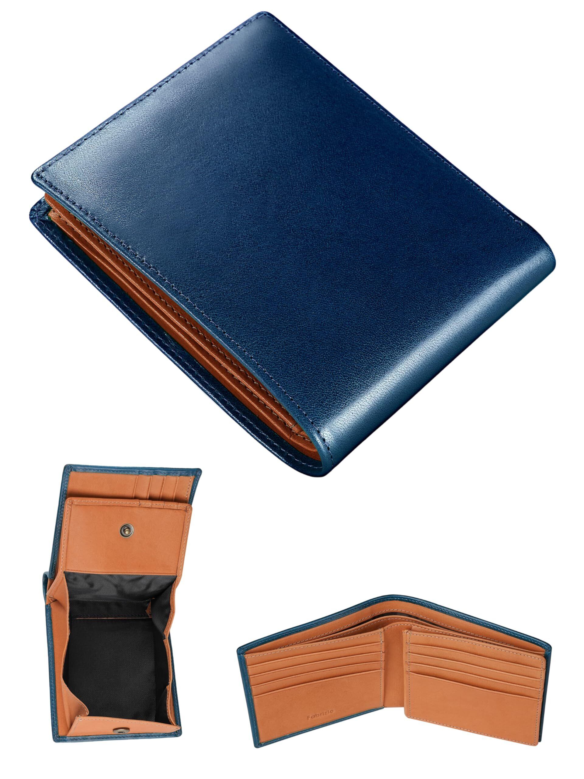[ファブリツィオ] 財布 メンズ 二つ折り ボックス型 小銭入れ メンズ財布 薄い 柔らかい 使いやすい イタリアン レザー 一流の革職人が作る 大容量 本革 (シャインブルー)