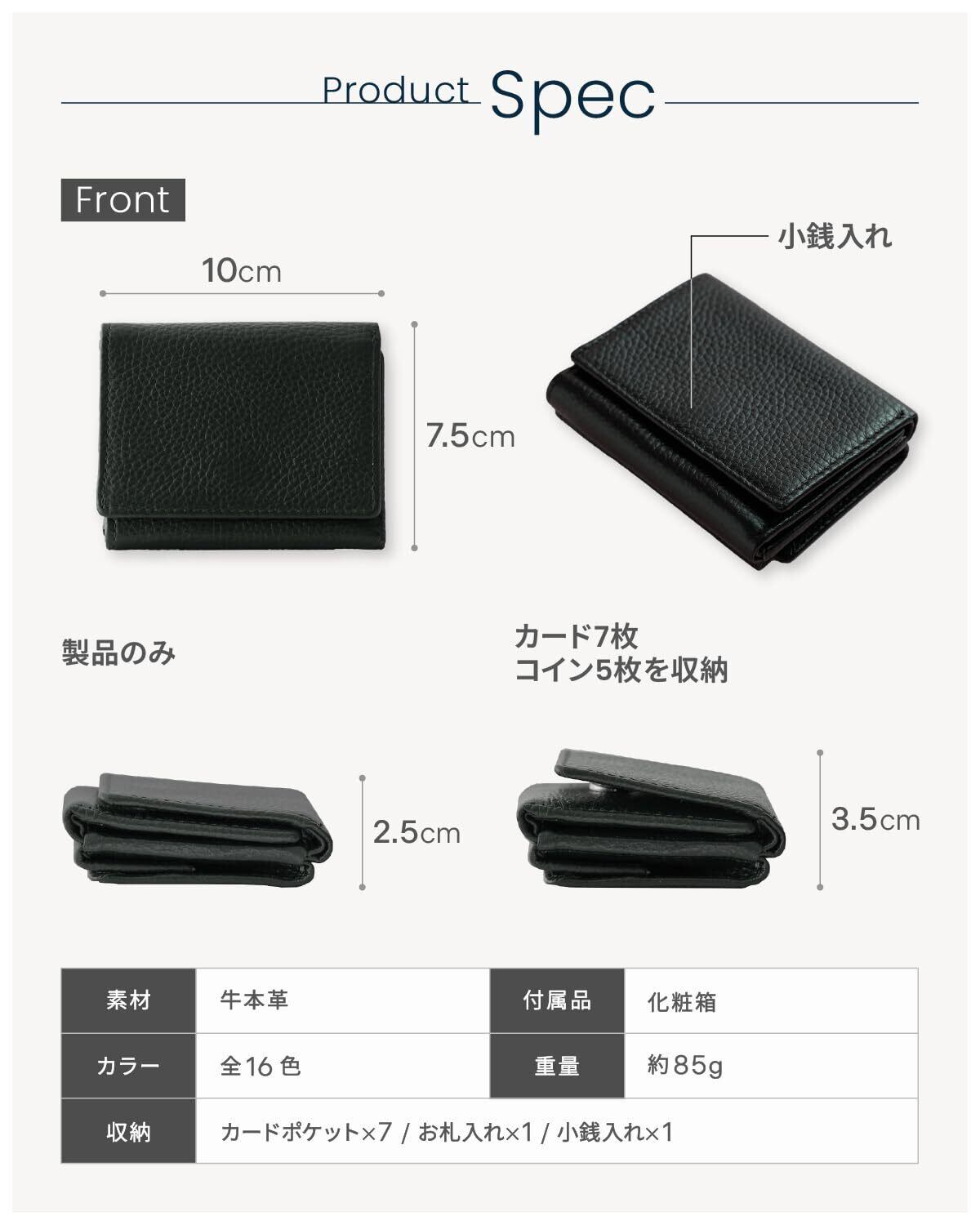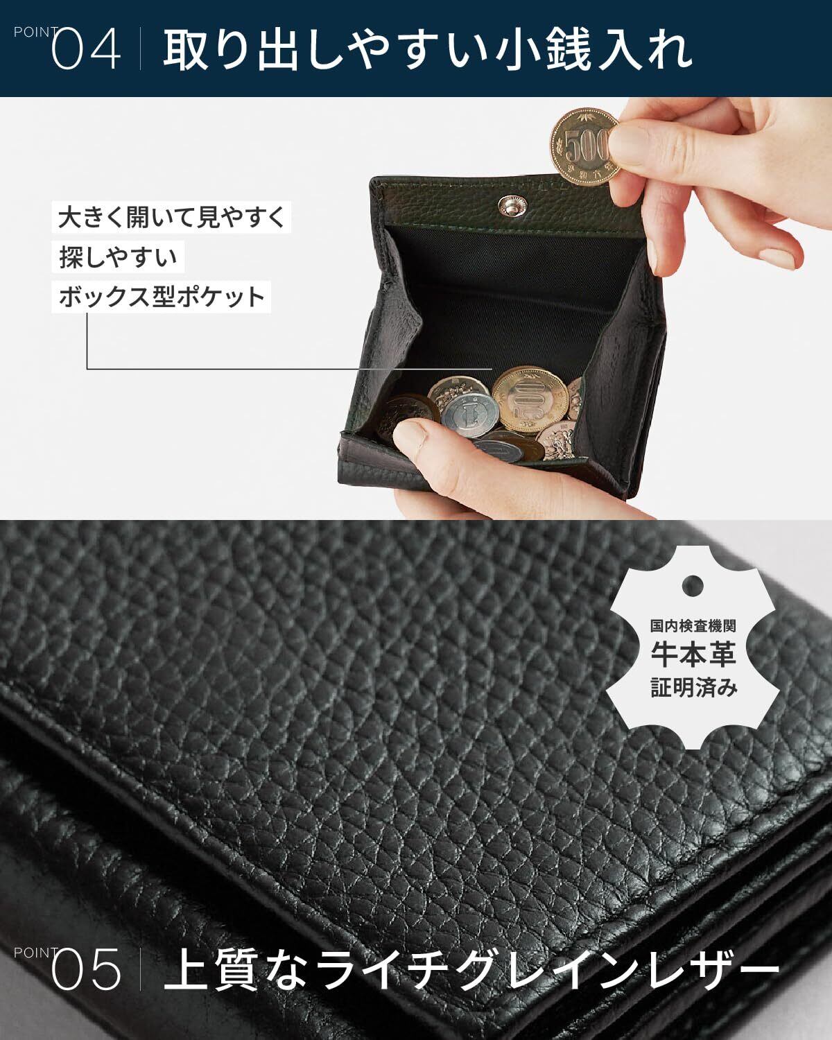 【長財布のスペックを極小サイズで】手のひらサイズ なのに 長財布 並みの収納。 小銭は30枚以上、お札10枚以上、カードも最大7枚入ります。 メインの 財布 として十分な 容量 で設計いたしました。【使いやすさに長けた小銭入れ】使う頻度が最も高い 小銭入れ スペースを開かずに、表側の位置で BOX 型にすることでこれまでにない使いやすさを実現します。 硬貨 を余分に入れても収納可能な大容量設計。