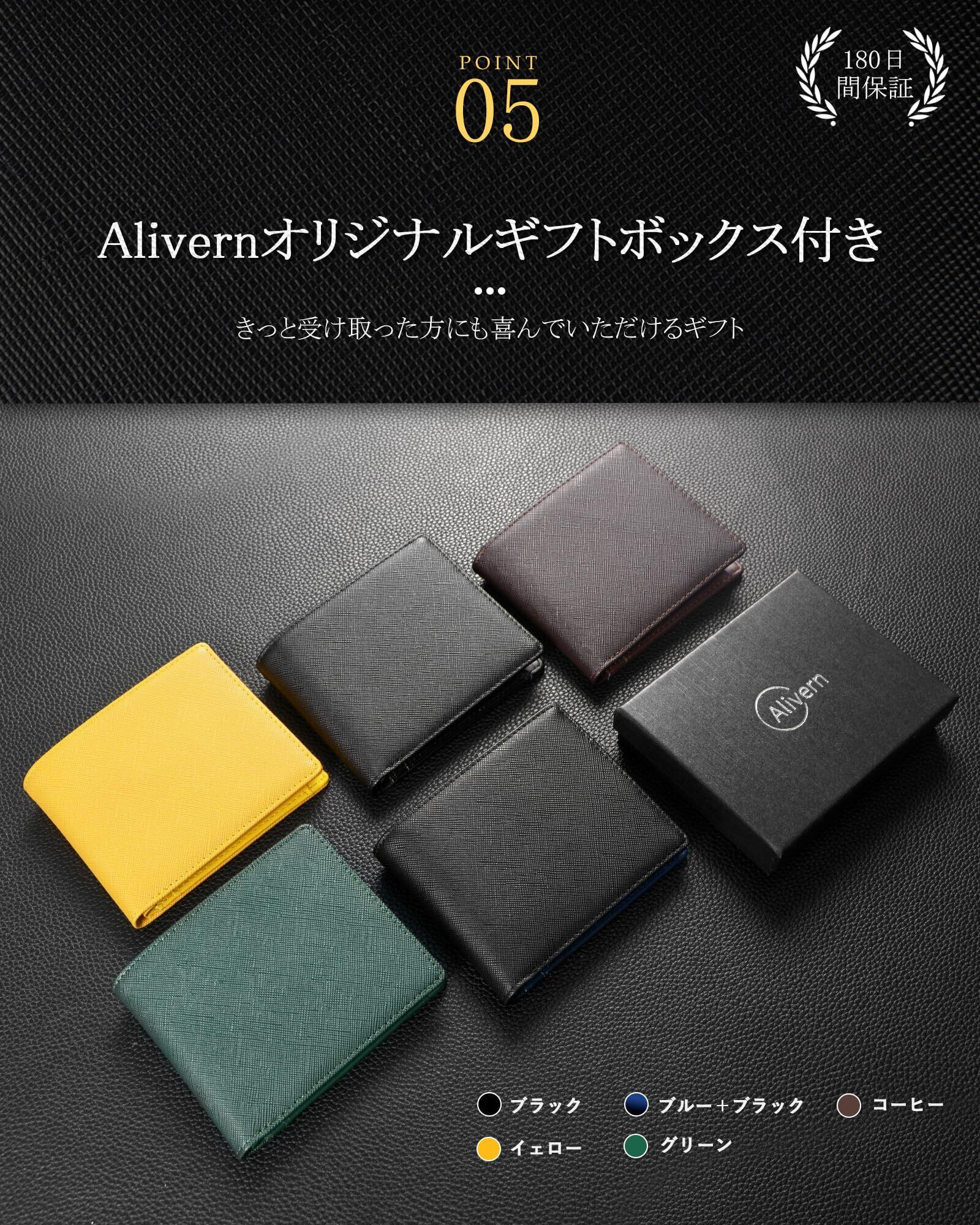 【新着商品】[Alivern] 財布 メンズ 2つ折り 本革 薄い 小銭入れ RFID&磁気スキミング防止 一流の財布職人が作る 二つ折り財布 ふたつおり サイフ コンパクト 軽い 紳士用 (ブラック+ブルー)