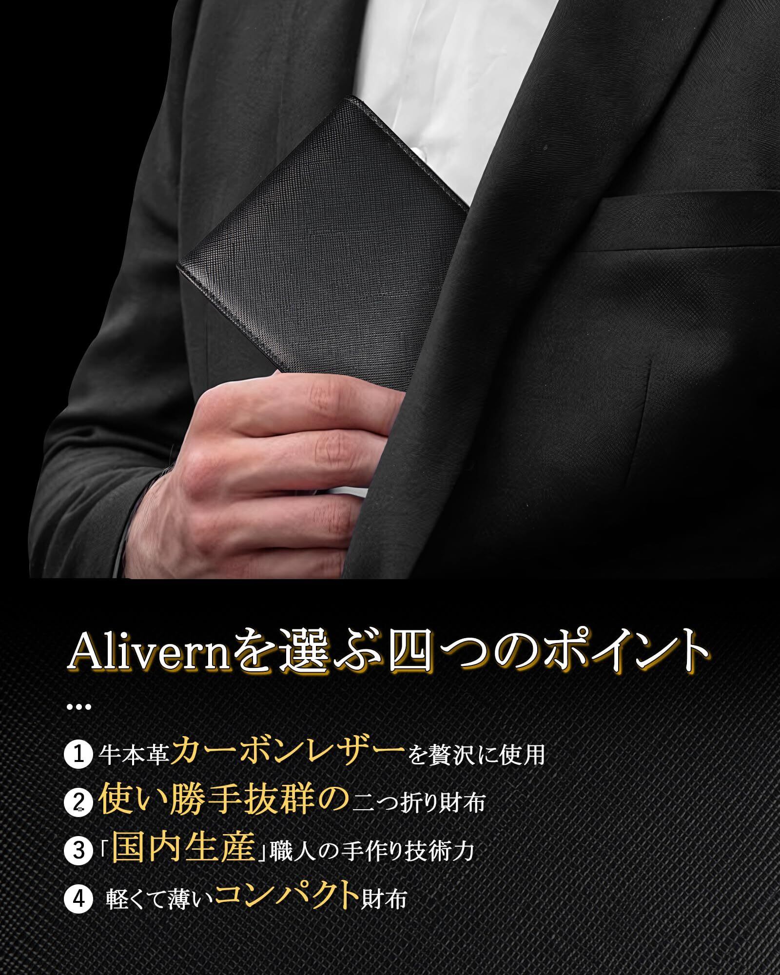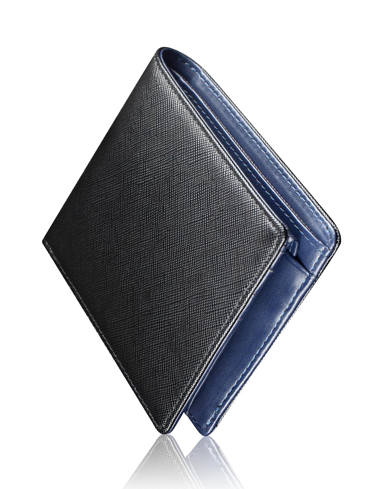 [Alivern] 財布 メンズ 2つ折り 本革 薄い 小銭入れ RFID&磁気スキミング防止 一流の財布職人が作る 二つ折り財布 ふたつおり サイフ コンパクト 軽い 紳士用 (ブラック+ブルー)