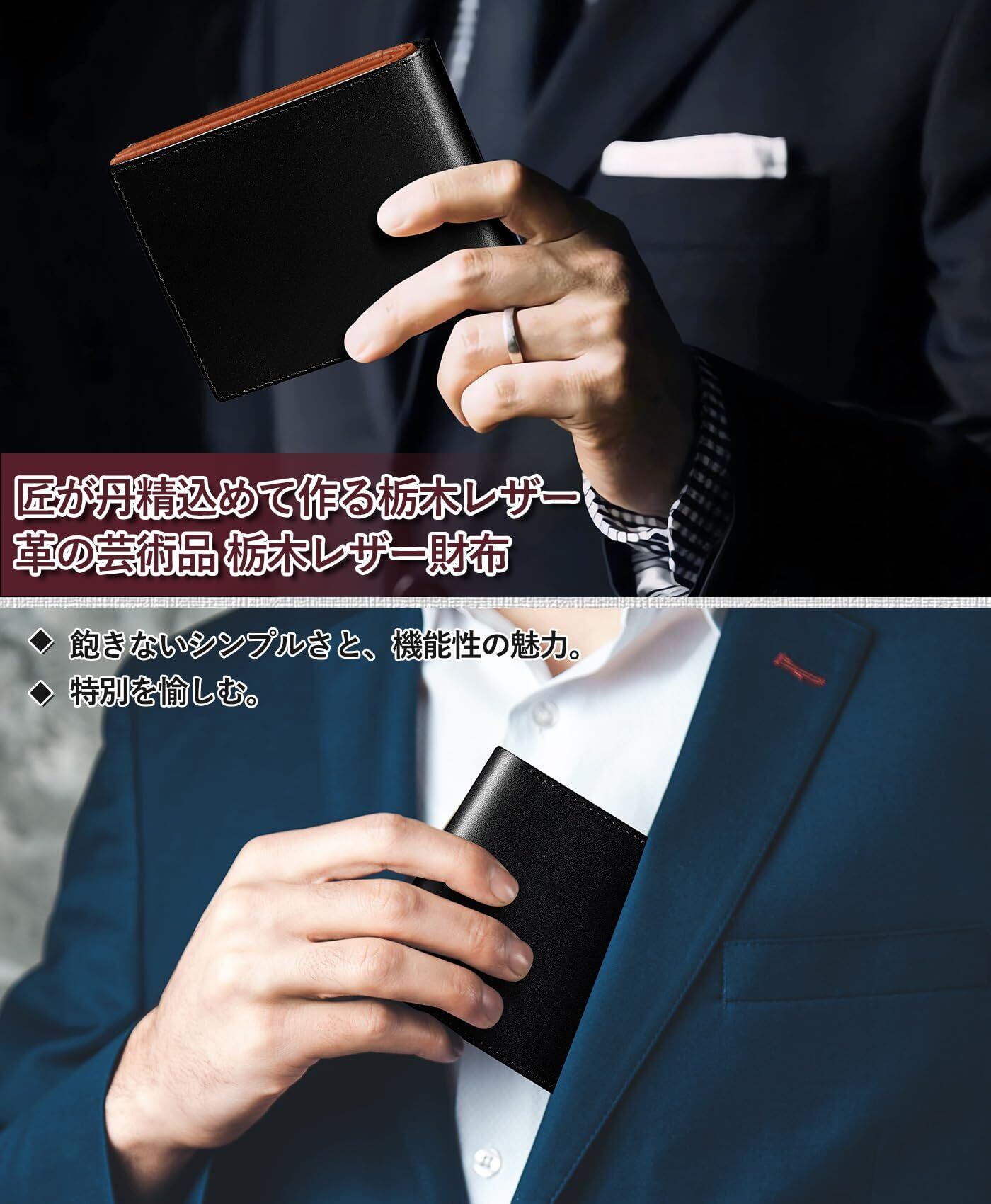 【数量限定】二つ折り財布 財布 メンズ 2つ折り 栃木レザー 本革 ボックス型の小銭入れ 大容量 カード16枚 父の日 金運 ブラック