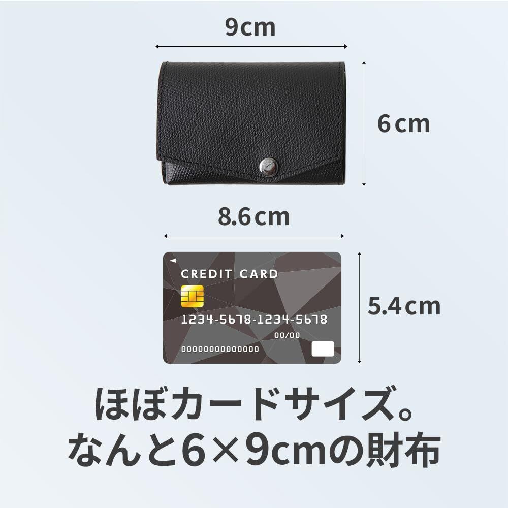 abrAsus (アブラサス)の「小さい財布」は、ほぼカードサイズ。なんと縦:約6cm×横:約9cm、厚さは約1cm(未収納時)
