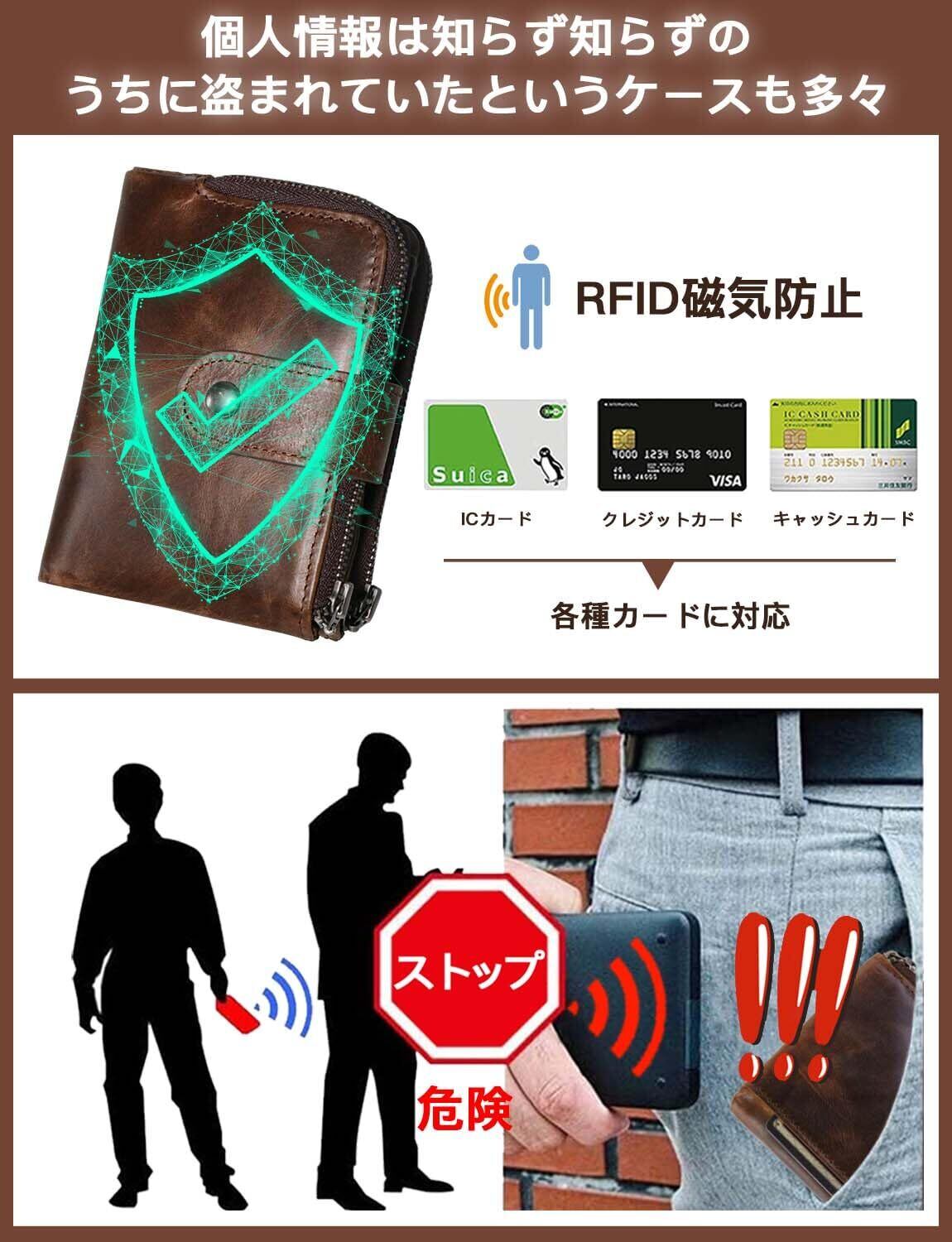 【革新的な2つの小銭入れのデザイン】左側にはあまり使わないものを、右側にはよく使う小銭を。【RFIDブロック素材でスキミング防止】キャッシュレス化が進む中、当店では財布 メンズ 二つ折り 大容量の製品にはRFIDブロック、つまりスキミング防止機能を必ず搭載しています。スキミング犯罪は、クレジットカードなどの個人データを盗み出す犯罪行為であり、特にRFIDが搭載されているカードは非接触でスキミングされることがあります。私たちは、お客様の個人情報を守るために、スキミングからの保護に最善を尽くしています