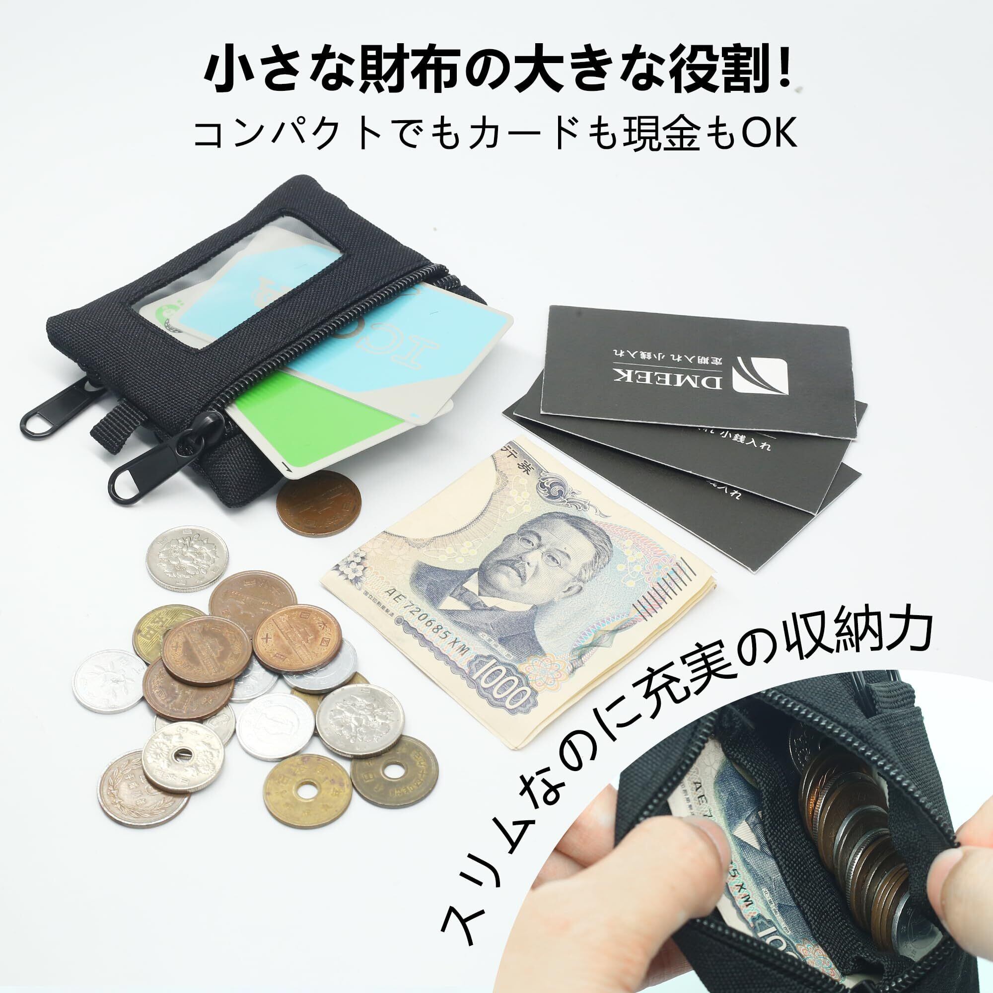 【在庫限り】DMEEK 小銭入れ パスケース 財布付き カードケース 定期入れ 伸縮式キーホルダー付き アウトドア カラビナ ランドセル キーケース メンズ レディース 子供 中学生 コンパクト 小銭ケース コインケース カード入れ (ブラック-ポリエステル)