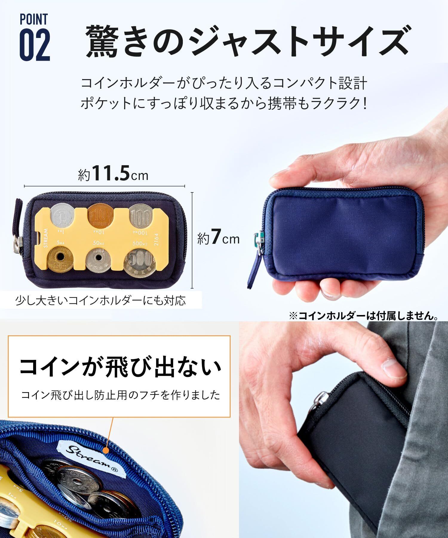 【コインホルダーに最適】コインホルダーがすっぽりと入り、クレジットカードや追加の硬貨も収納できます。 STREAMコインホルダーを始め、他社製品もしっかりと収納可能!コンパクトなお財布としても活躍します。