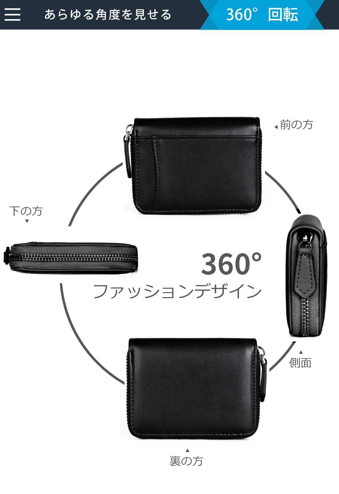 小銭入れ コインケース メンズ 財布 本革 カードケース カード入れ 大容量 牛革 (ブラック/ブラック)