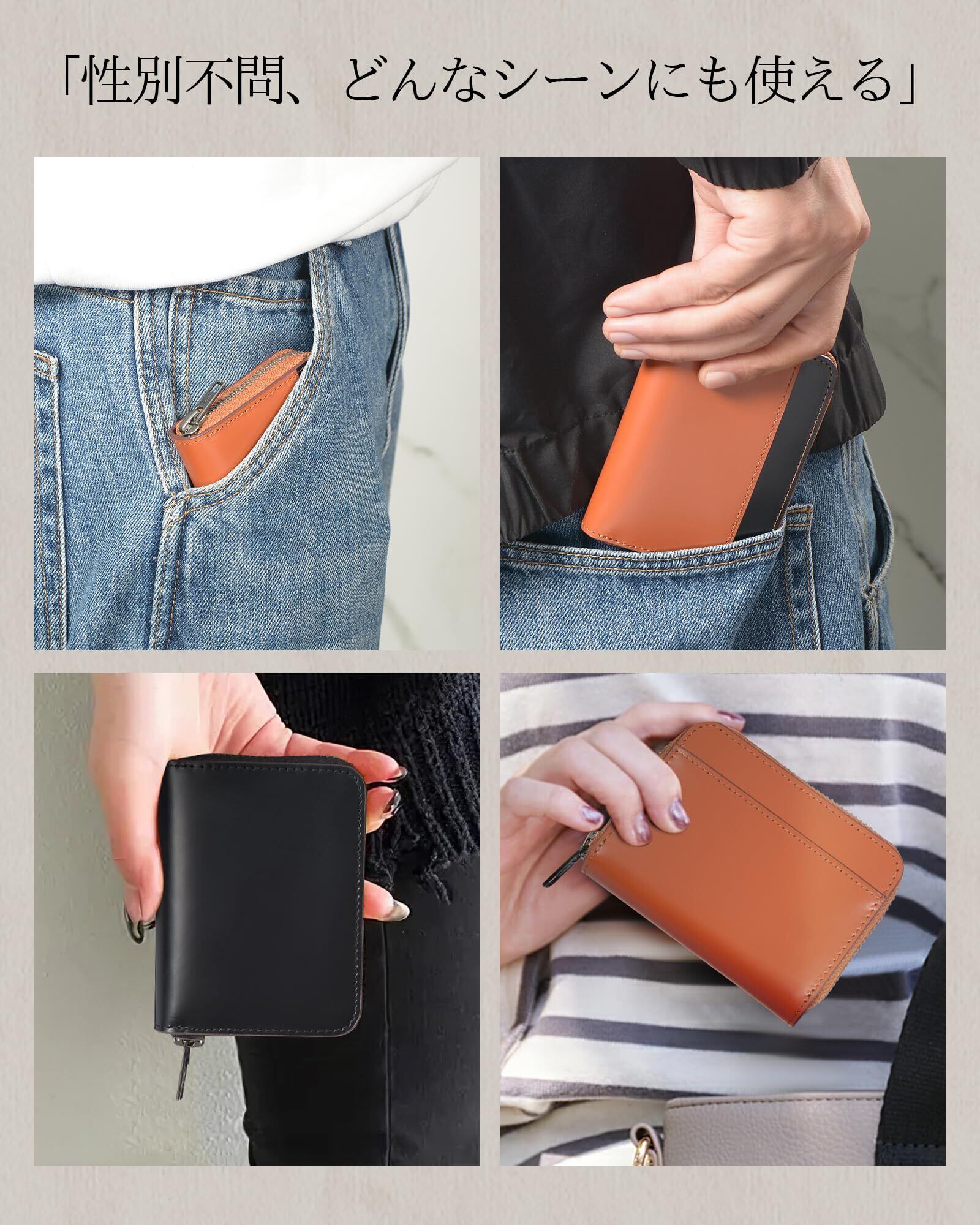 「仕様·収納スペース」小ささも、機能性も諦めない。日常だけでなく、アウトドアや旅行にも適しています。本革小銭入れ本体サイズ:2.5*8*11cm 収納可能スペース:内側:ポケットx4 キーチェーンx1 外側:ポケットx1