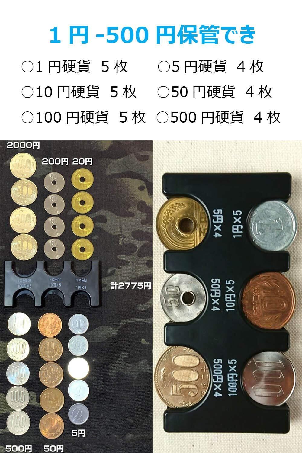 【数量限定】携帯コインホルダー コイン収納 硬貨をすばやく分類ケース レジで慌てない小銭財布 片手で取り出せ 2775円収納でき 振っても落ちない (45 x 92 x 12mm 黒)