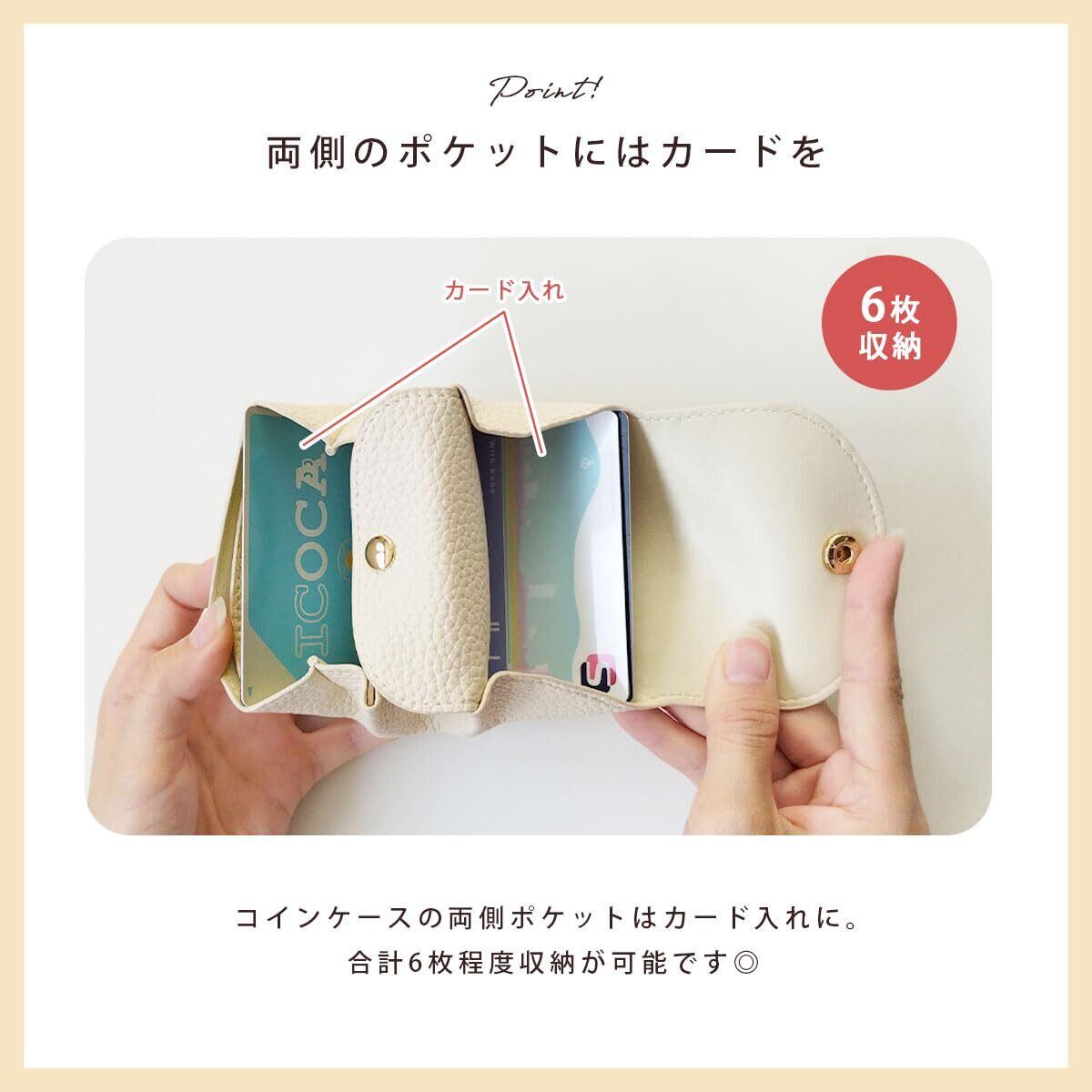 ころんとしたフォルムが可愛いミニ財布! 手のひらに収まるコンパクトサイズでも 小銭、お札、カードもしっかり収納◎ お札はするっとスライドさせて、折らずに収納が可能です!