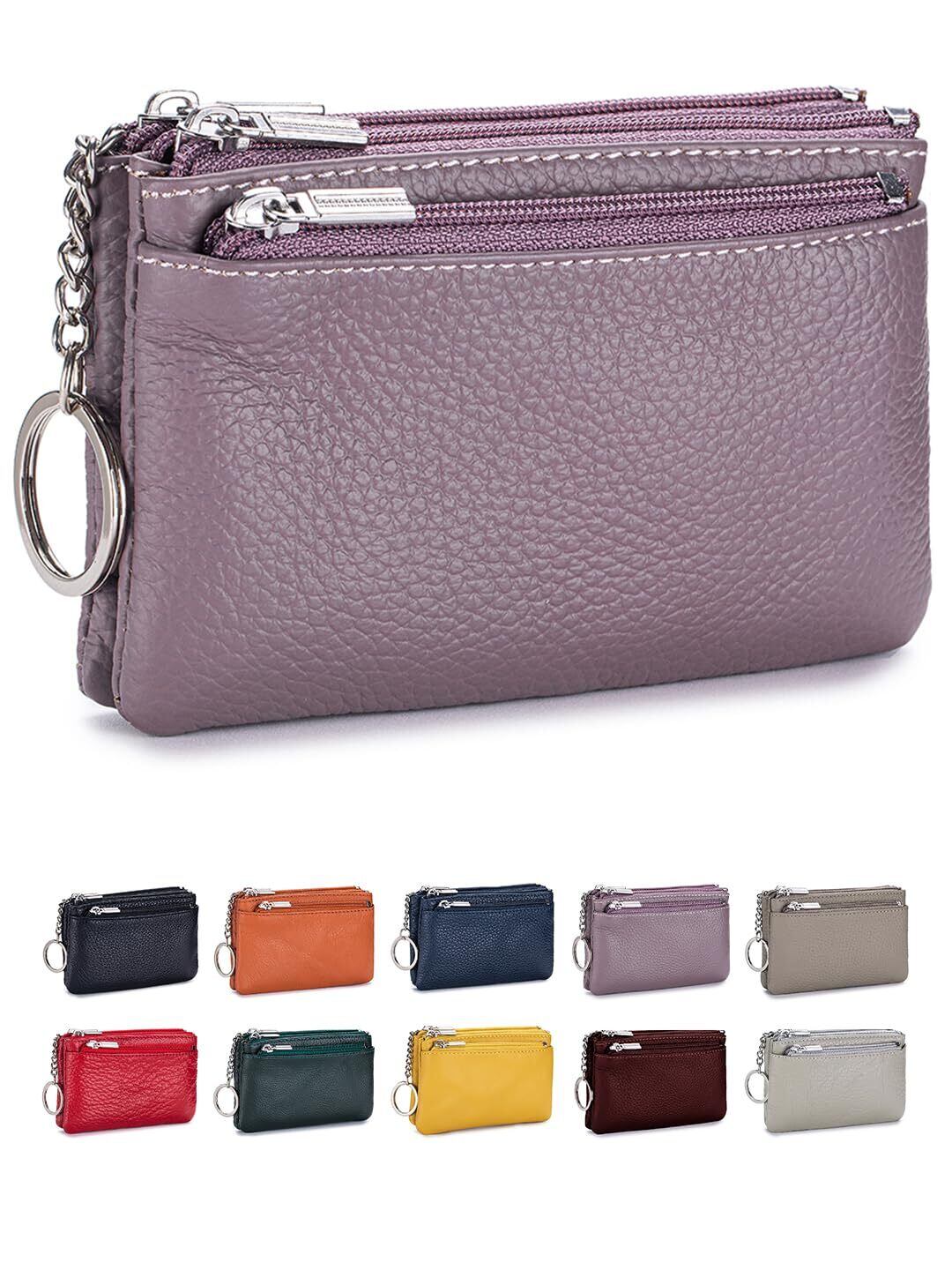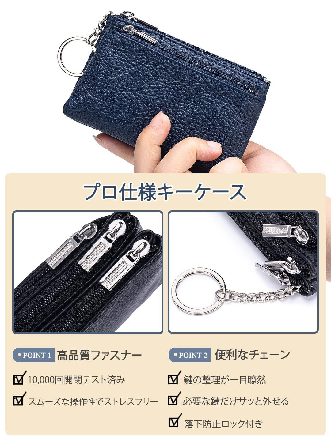 【2025最新】[Amzbag] 小銭入れ メンズ レディース 本革 【コインケース・カードケース・キーケース・ミニ財布一体型】3層式マルチポーチ キーリング付き 薄型 定期/コイン/カード/紙幣/キーを収納 コンパクト 仕分け 多機能 防水 おしゃれ ギフト (パープル)