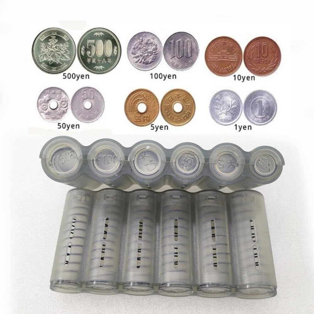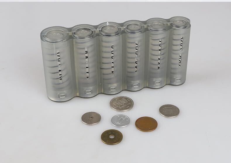 内部にはバネがあり、1枚のコインを取り出すと次のコインがすぐに準備されます。手触りが非常にスムーズです。 画像のコインは含まれていません 容量: 1円x35 5円x34 50円x30 10円x34 100円x31 500円x29 すべて:19645円
