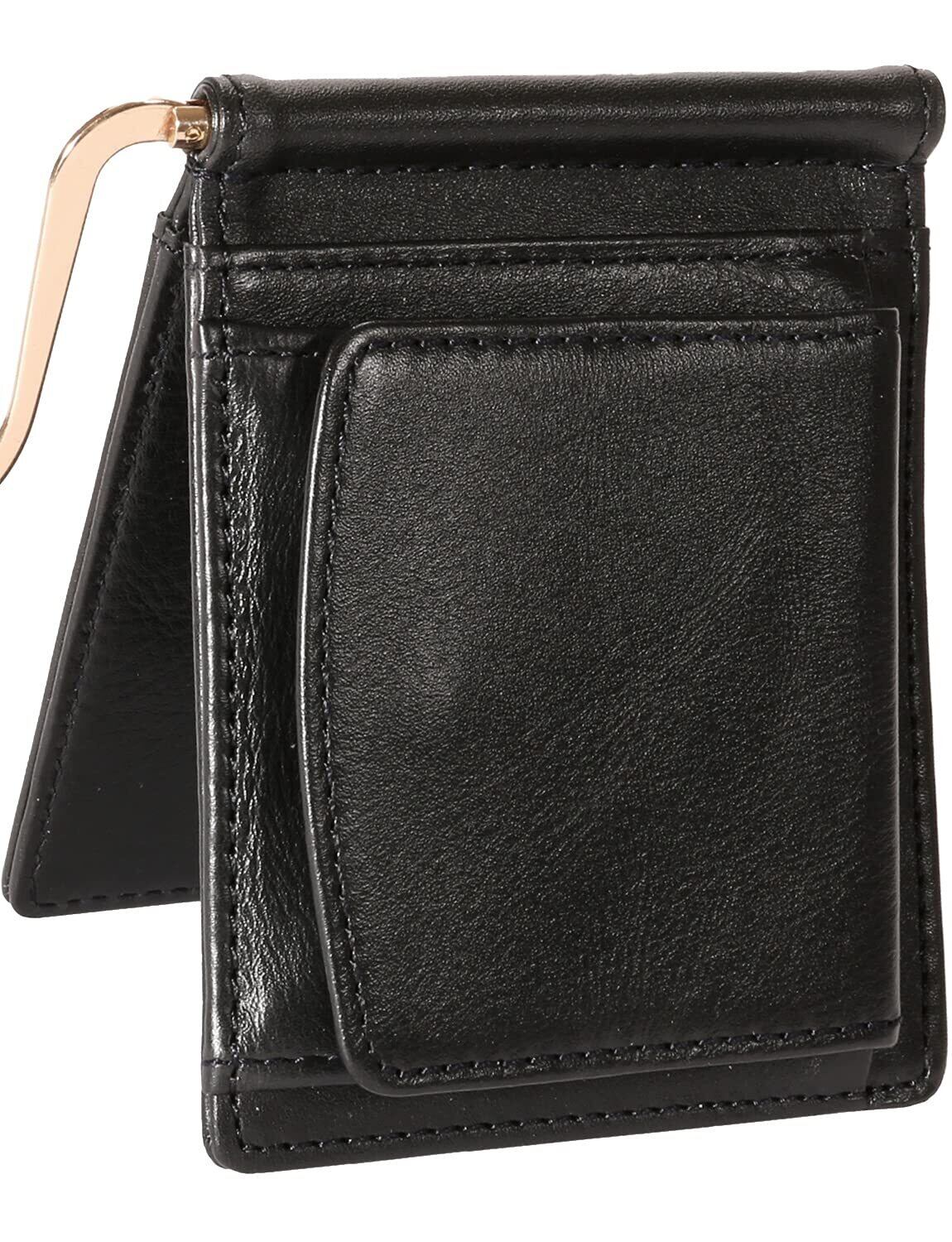 【新着商品】[BLUE SINCERE] 一流の革職人が紡ぎだす マネークリップ 小銭入れ付き メンズ 財布 二つ折り タンニン鞣し 本革 シンプル 大容量 カード8枚収納 隠しポケット付き ギフトボックス付き / MC2 (ブラック × ブラック)