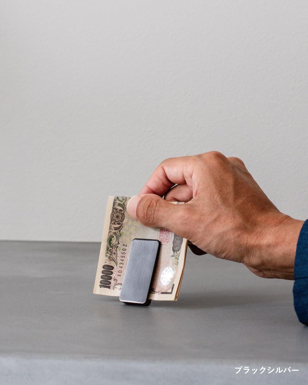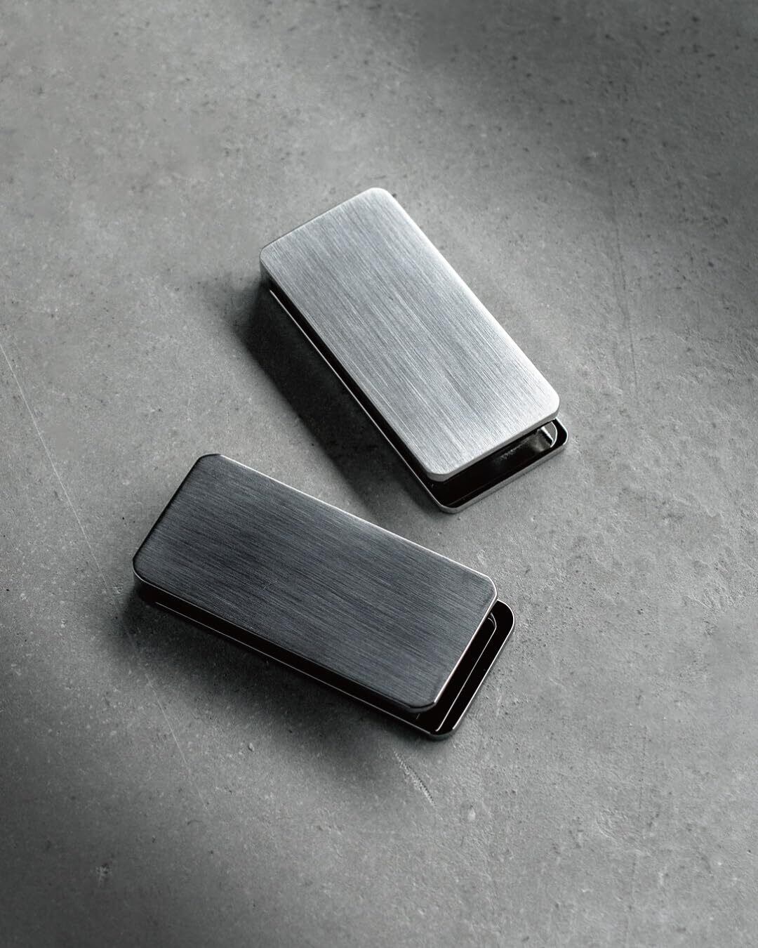 金属製マネークリップは経年劣化により挟む力が弱くなるという欠点をクリアすべく試作を繰り返し、金具とバネが広がることで、お札を挟む力が弱くならないマネークリップが完成。1枚からしっかりと挟むこともできます。表面にはサテーナ加工を施し、高級感のある仕上がりに。