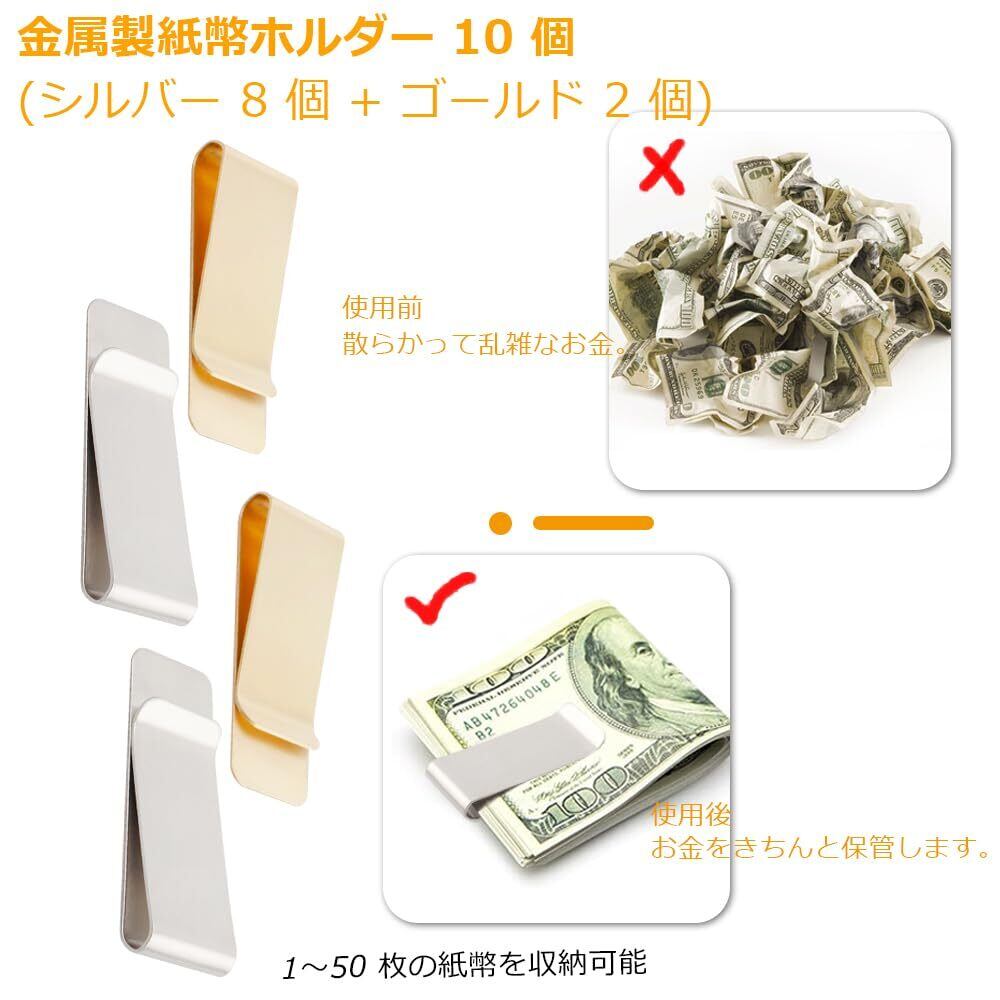 10個セット マネークリップ、ステンレススチールカードクリップ 男性/女性用、 プレーンタイプ スマートペーパークリップ、お財布いらず お札はさみ、コンパクトマネーキャッシュクリップ、分類現金の収納に適している シルバー8個 & ゴールド2個
