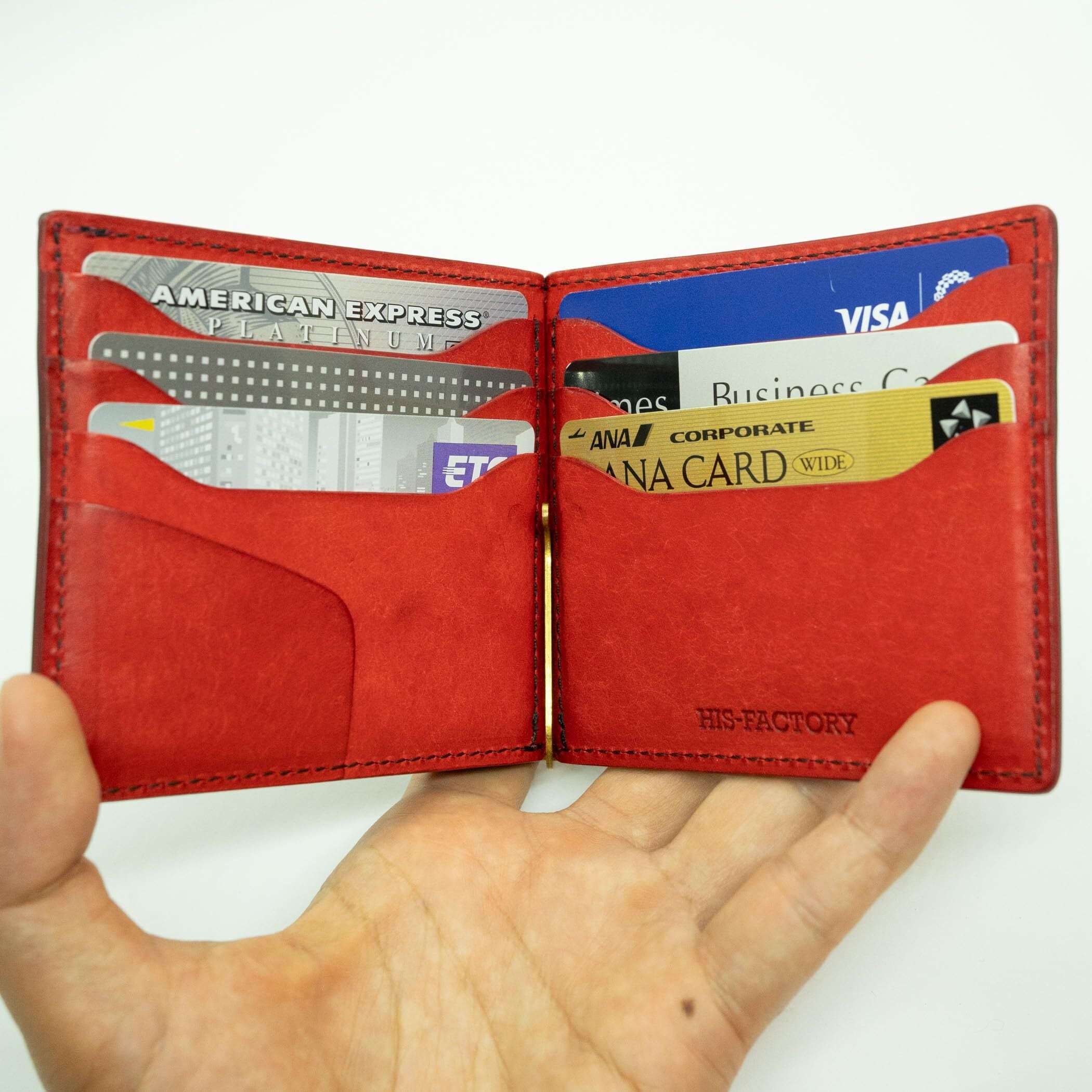 ヒズファクトリー 小銭入れ付きマネークリップ (Newクロ×パパベロ/ステッチ色反転)