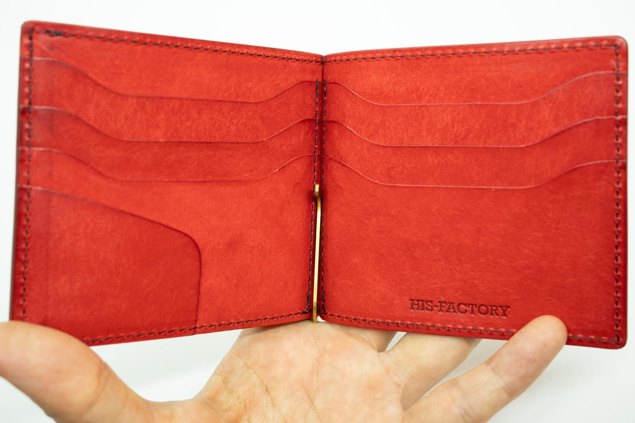 【特価セール】ヒズファクトリー 小銭入れ付きマネークリップ (Newクロ×パパベロ/ステッチ色反転)