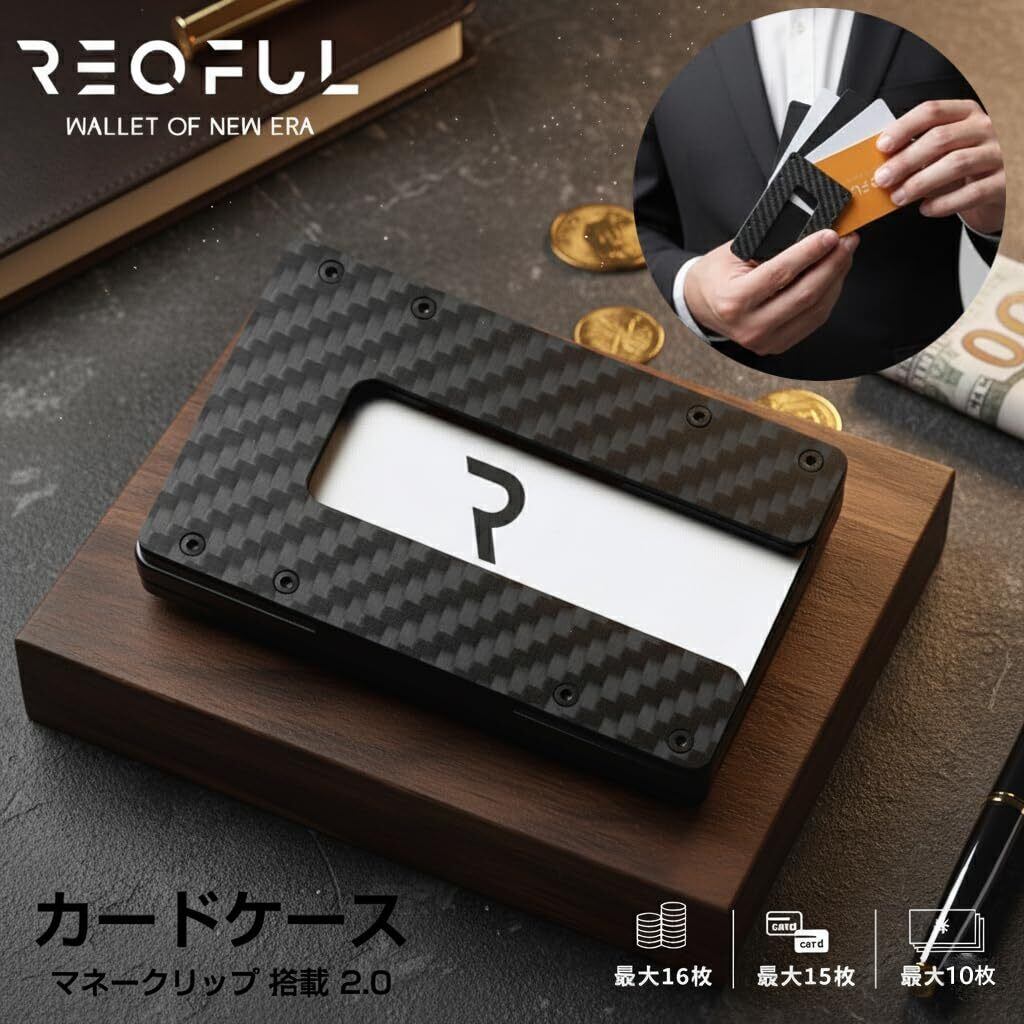 【限定セール】[REQFUL] 2.0 カーボン ブラック マネークリップ クレジットカードケース 小銭入れ 大容量 薄型 コンパクト スキミング防止 メンズ ギフト