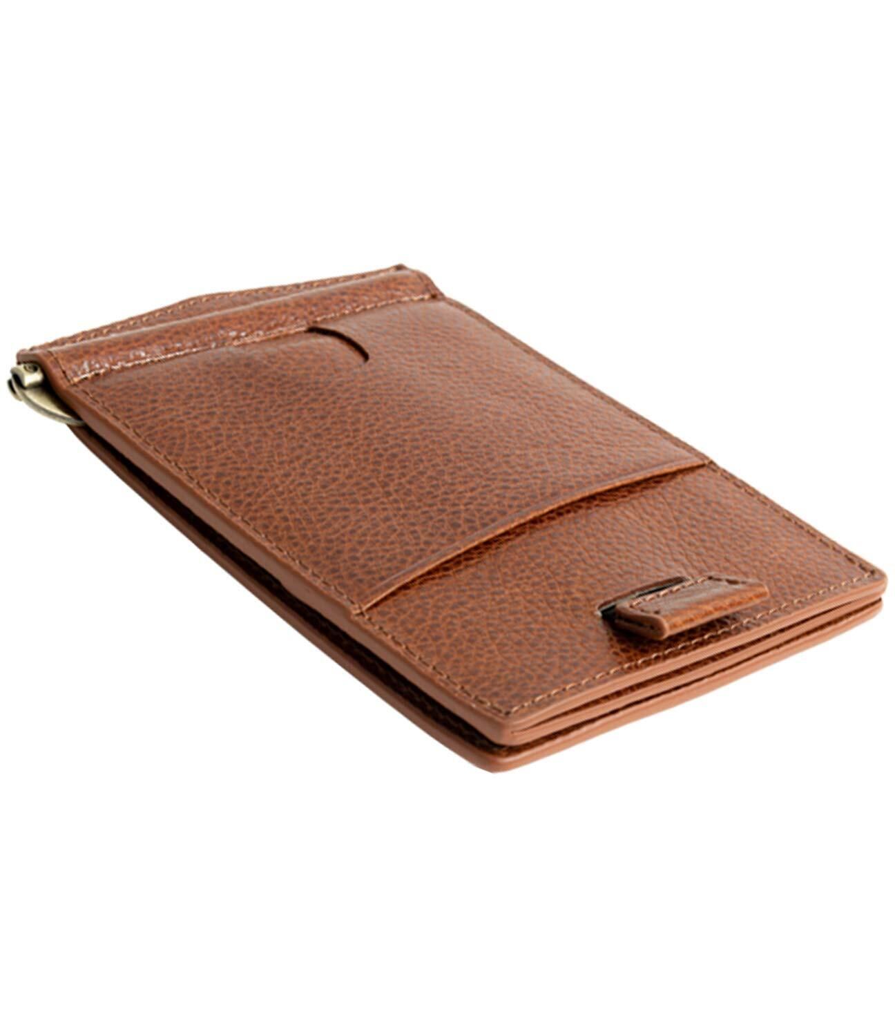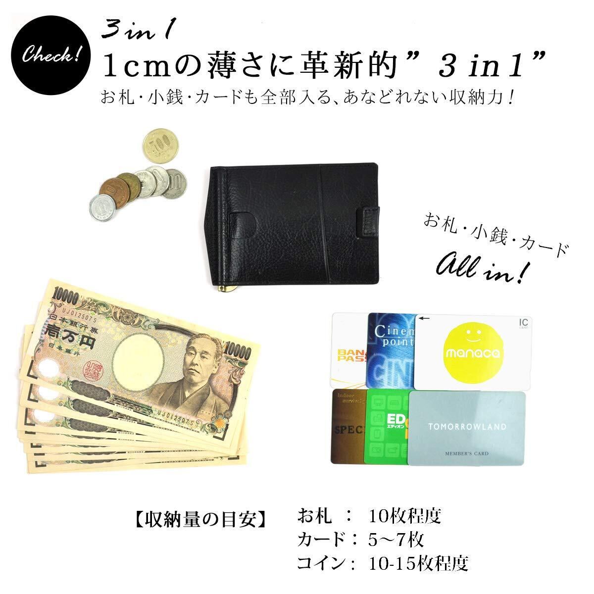 [Dom Teporna] マネークリップ 本革 薄型 1cm 小銭入れ 外ポケット 財布 プルタブ カードケース レザー 牛革 メンズ 薄い 札入れ 札バサミ スリム ダークブラウン