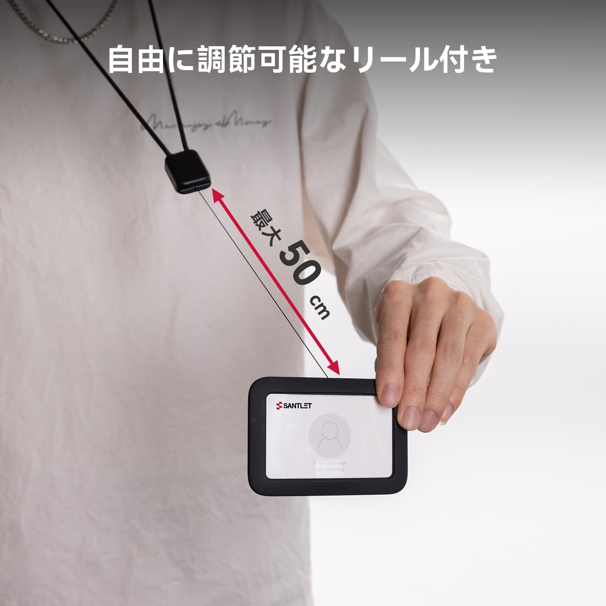 【静かでスムーズな伸縮式リ-ル】名札ケースには、耐久性のある金属スプリング、太い編み込みロープ、耐摩耗性の金属リング、そして静音技術で構成されます。引張強さは非常に良く、約50CMまでスムーズに伸縮できます。このID カードホルダー リールはハイエンドでファッショナブルかつ実用的で、どんな服装にも違和感なし、個人魅力を加えます。