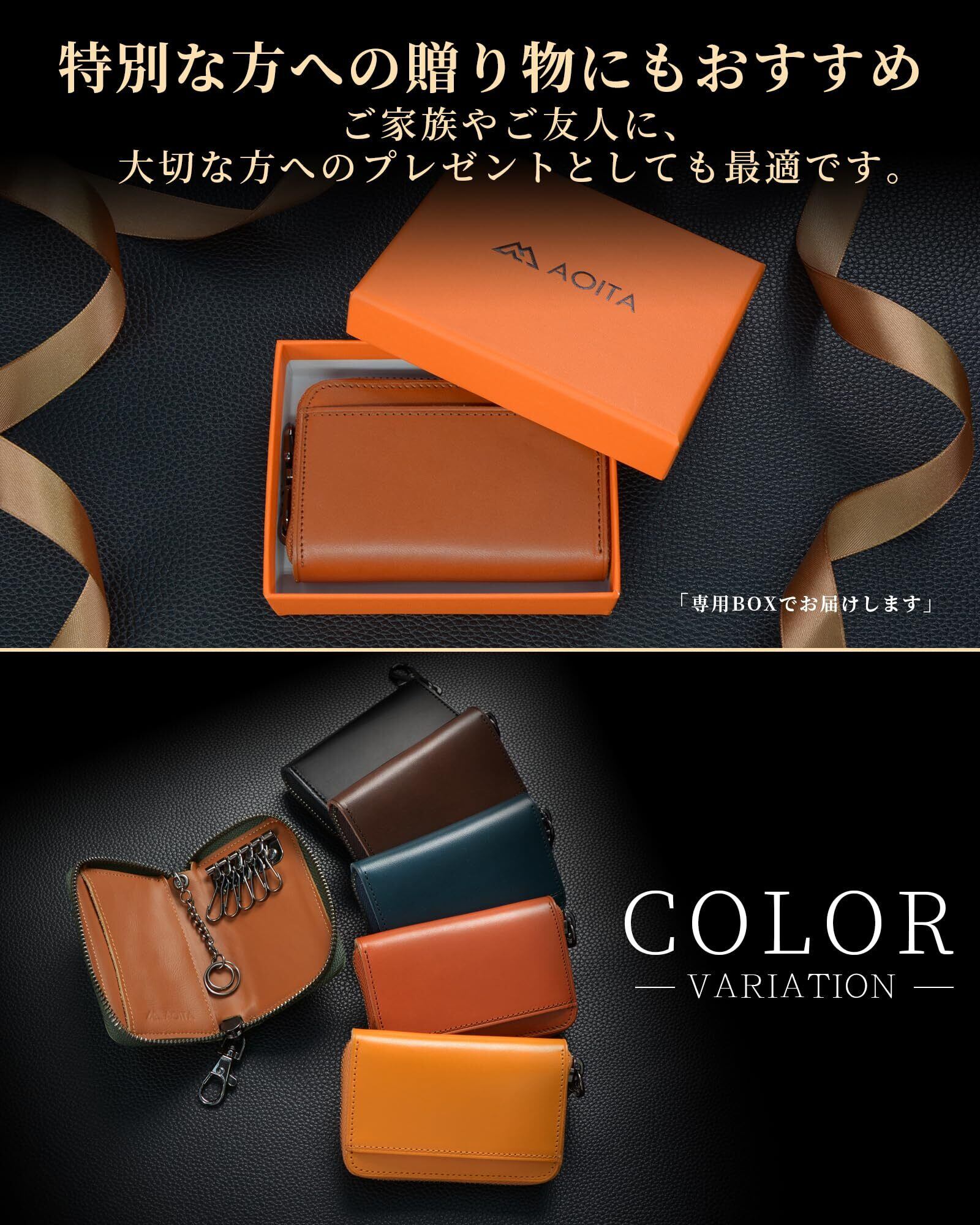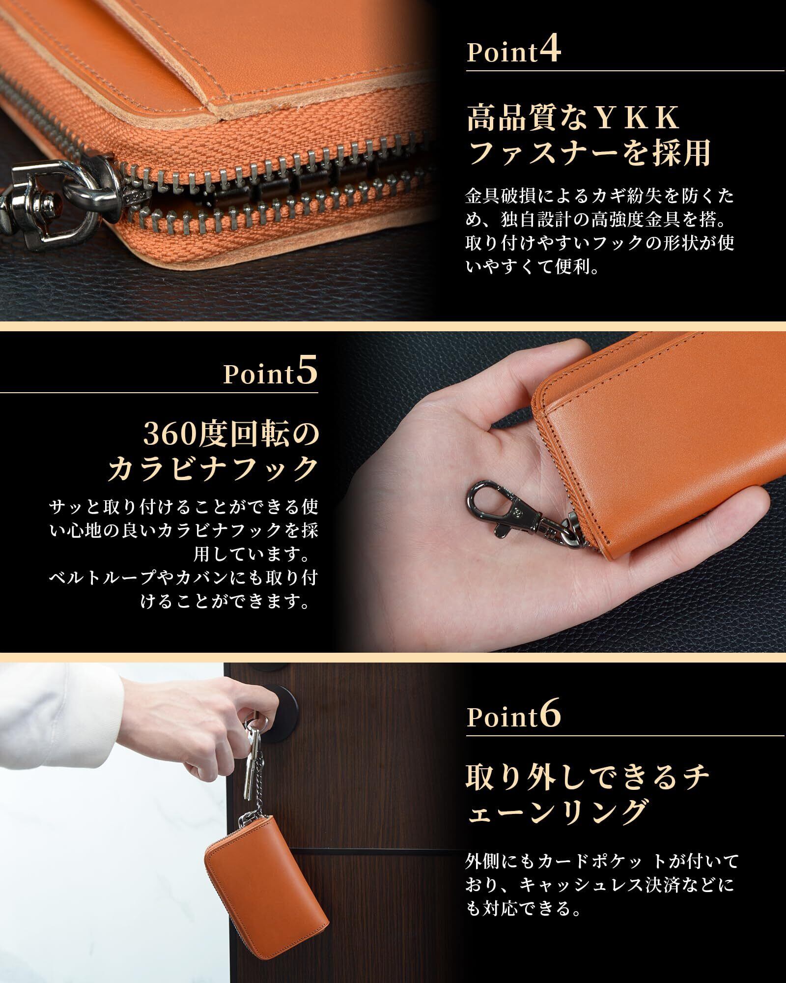 [Aoita] キーケース メンズ 栃木レザー 日本製 多機能 本革 5連フック ファスナー スマートキーケース 車 鍵 コンパクト カード入れ key case プレゼント