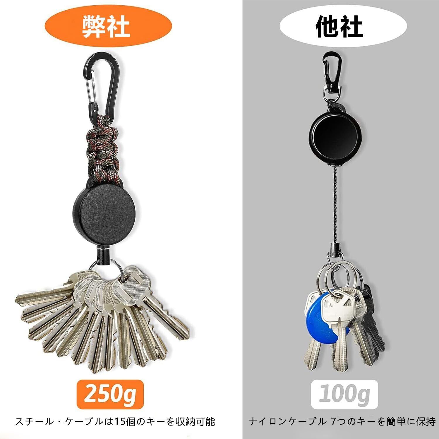 【巻き取り式スチールコード】セット内容:2個セット、カラー:ブラック、巻き取り式キーホルダー2本セットには、最大60cmまで伸ばせるステンレススムースPVCコーティングスチール製の直径1mmスチールコードが内蔵されています。 内蔵された強力なスプリングは250gの荷重に耐えることができ、毎日のニーズに応えます。(ご注意:ご購入前にサイズにご注意ください、この商品のサイズは大きい方です。)