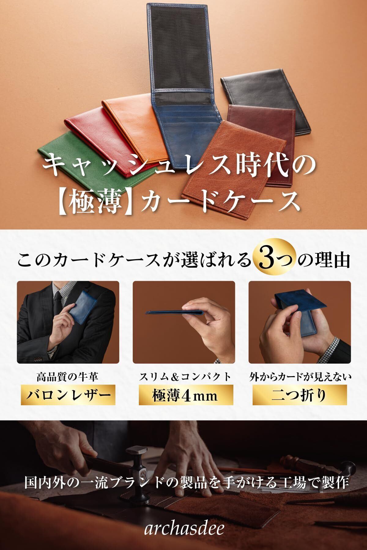【一流ブランドと同じ工場で製作】国内外の一流ブランドのOEMを請け負っている工場で生産。一流ブランドの製品に引けを取らないハイクオリティーなカードケースです。