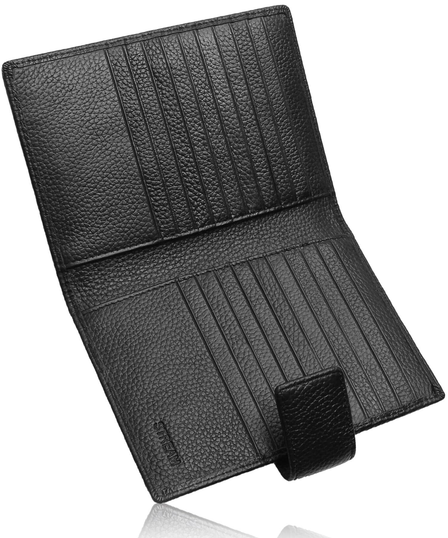 [STREAM] カードケース 二つ折り メンズ レディース 本革 クレジットカードケース 大容量 (ブラック)